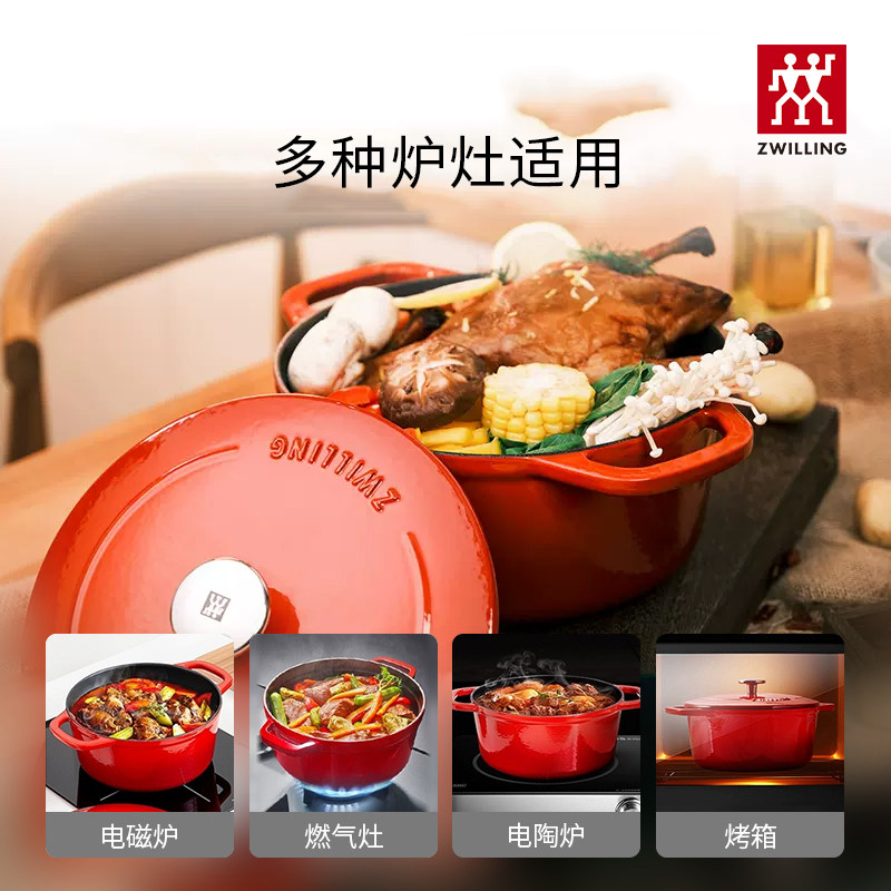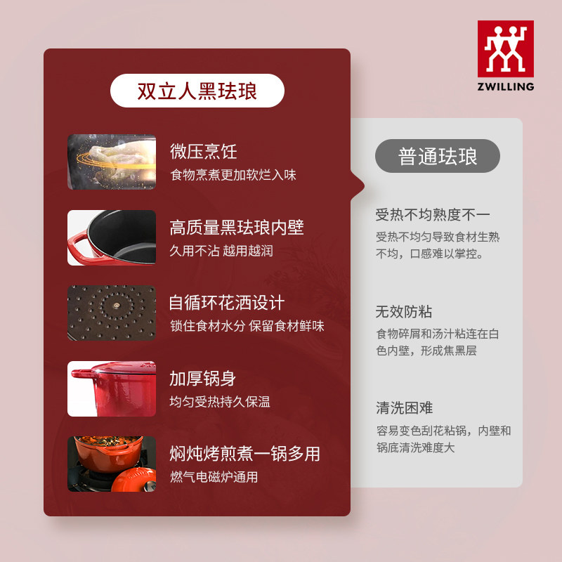 德国双立人珐琅铸铁锅家用厨房蒸锅24cm炖锅煲汤锅焖烧锅铁锅
