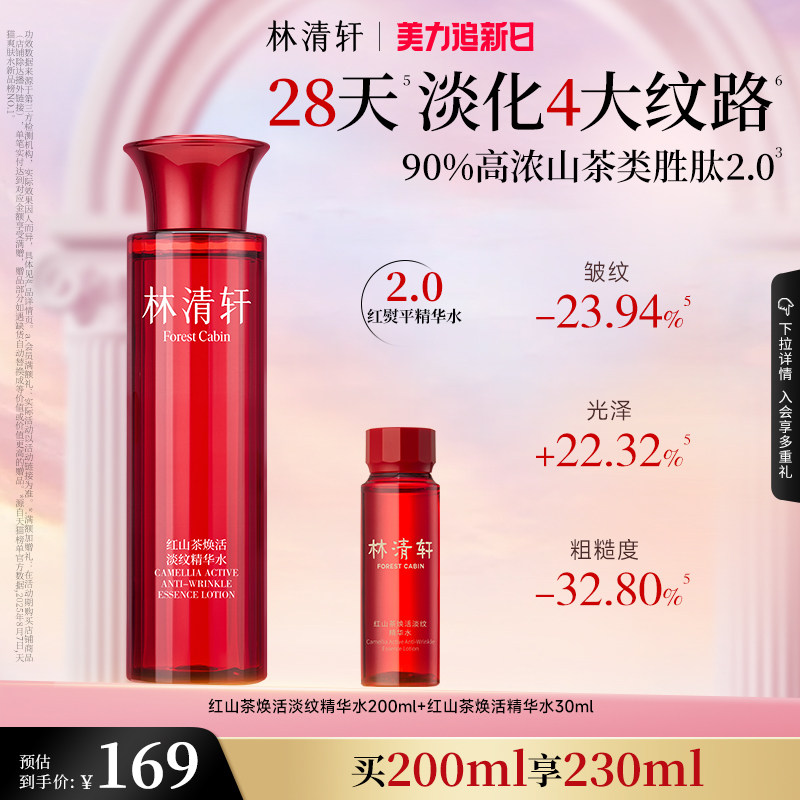 【立即抢购】林清轩红山茶水柔肤液抗皱修护保湿精华水爽肤水
