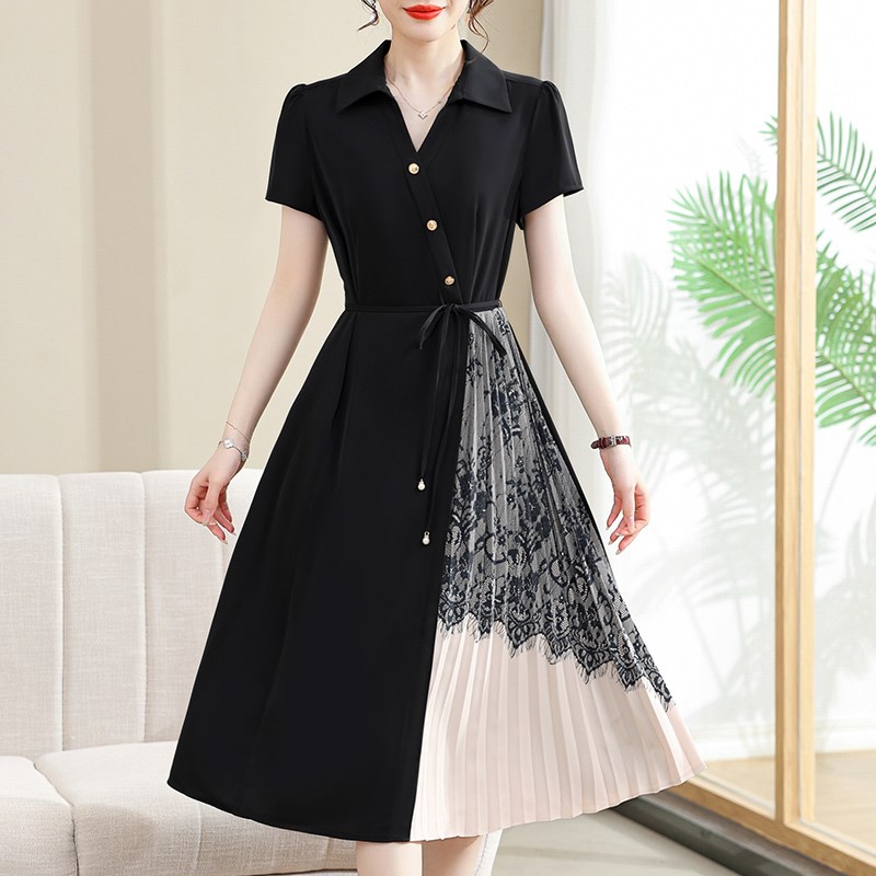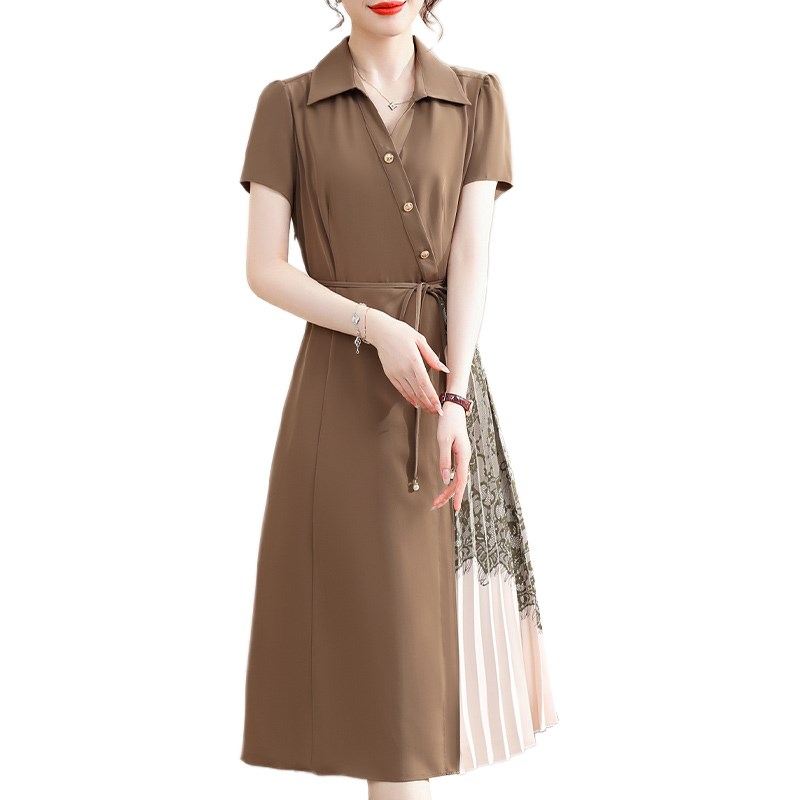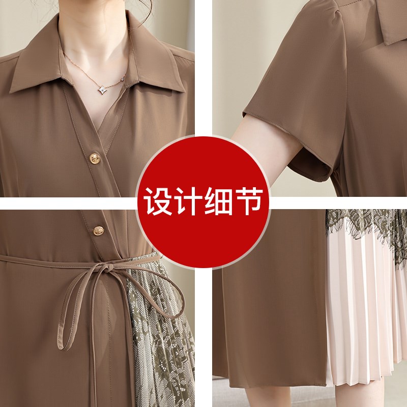 妈妈夏装气质短袖连衣裙中年女装洋气系带2024新款中老年雪纺裙子