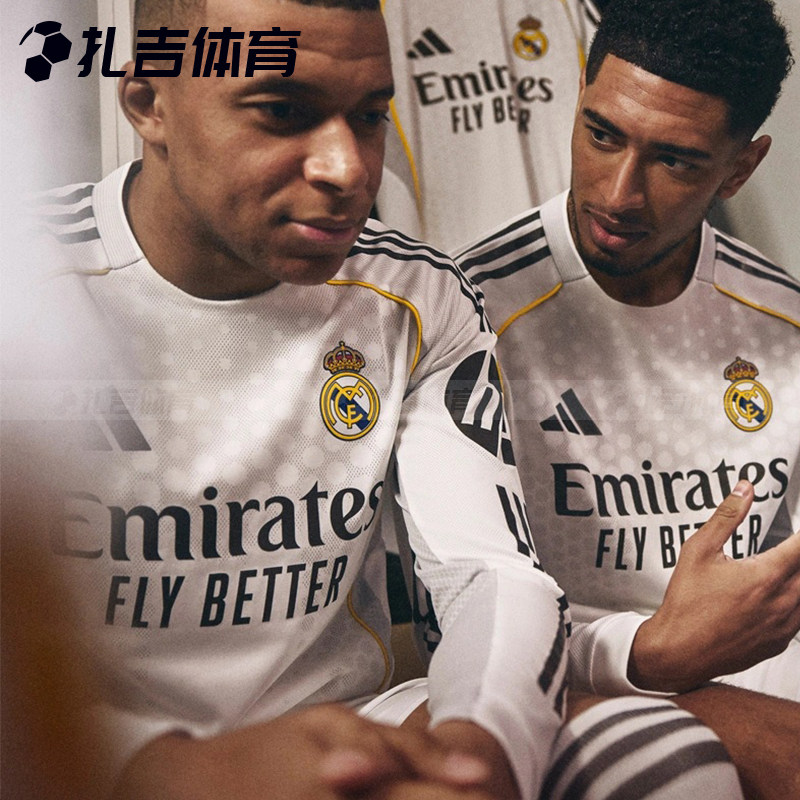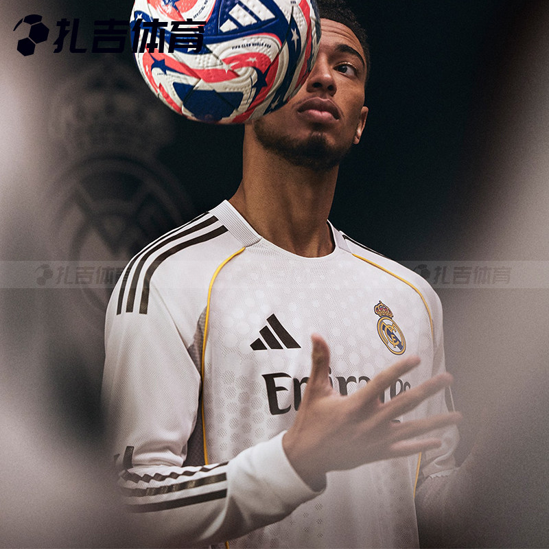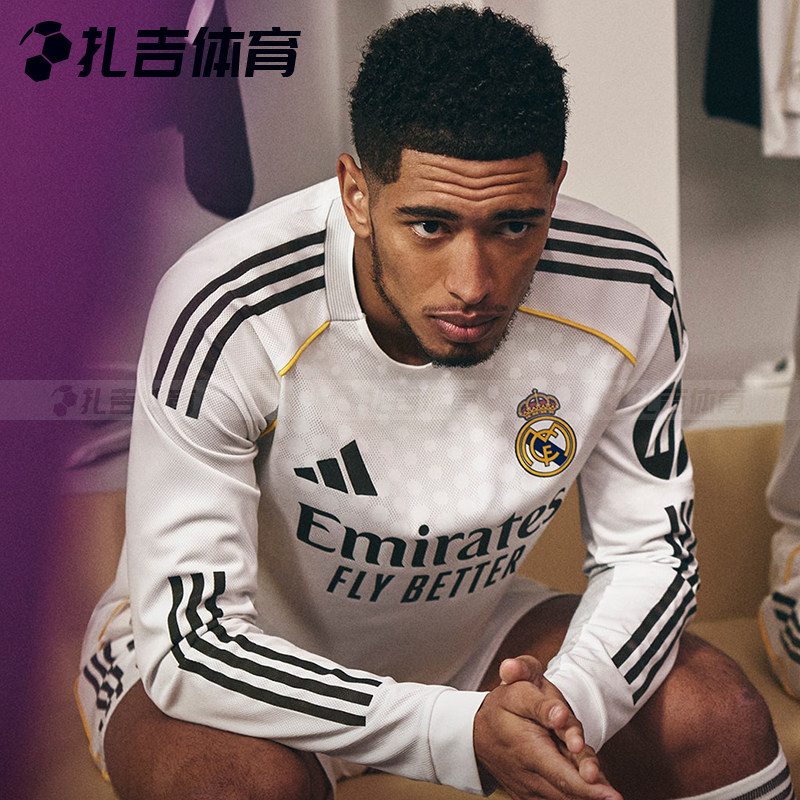 扎吉体育Adidas皇马25/26赛季主场球迷版长袖足球服男球衣JN8884