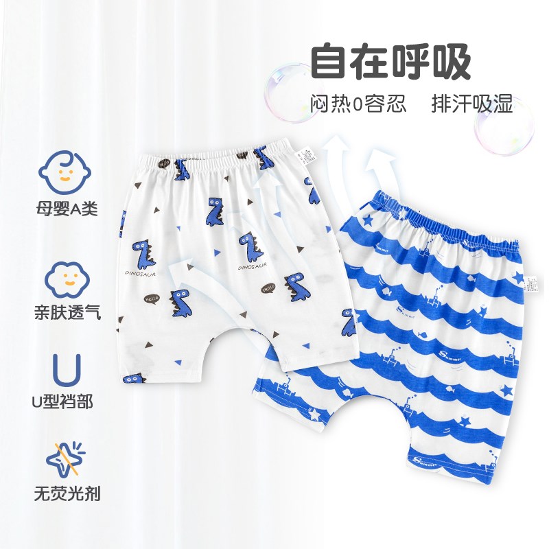 宝宝短裤夏季薄款纯棉男童七分裤婴儿大屁屁裤子儿童pp裤夏装小童