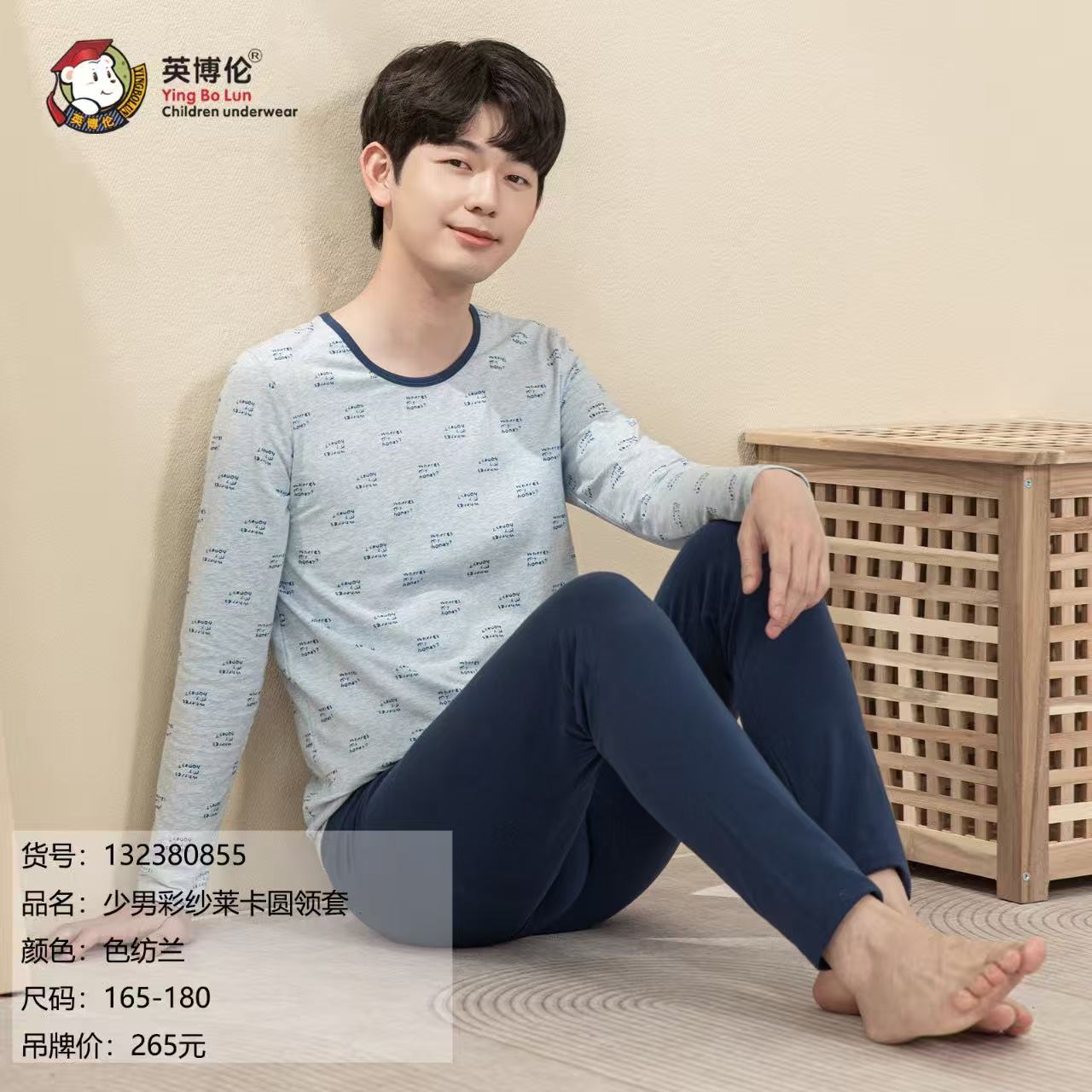 英博伦少男秋衣套装保暖衣青少年纯棉内衣全棉打底男士初高中微胖