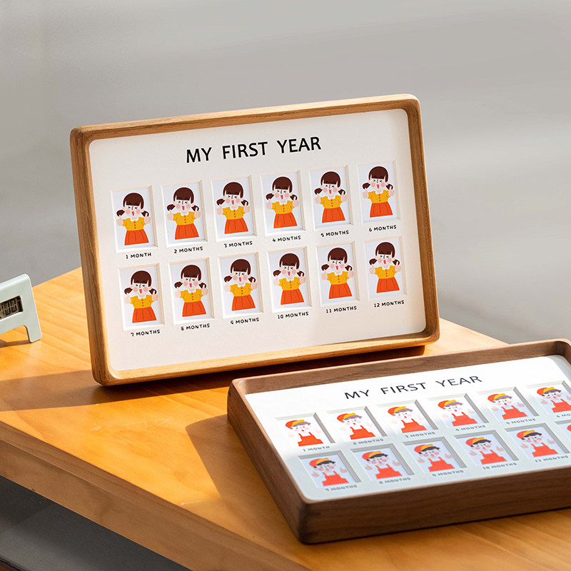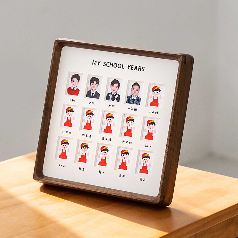 校园毕业纪念儿童成长记录证件照相框宝宝入园照1寸2寸实木摆台
