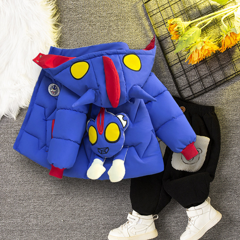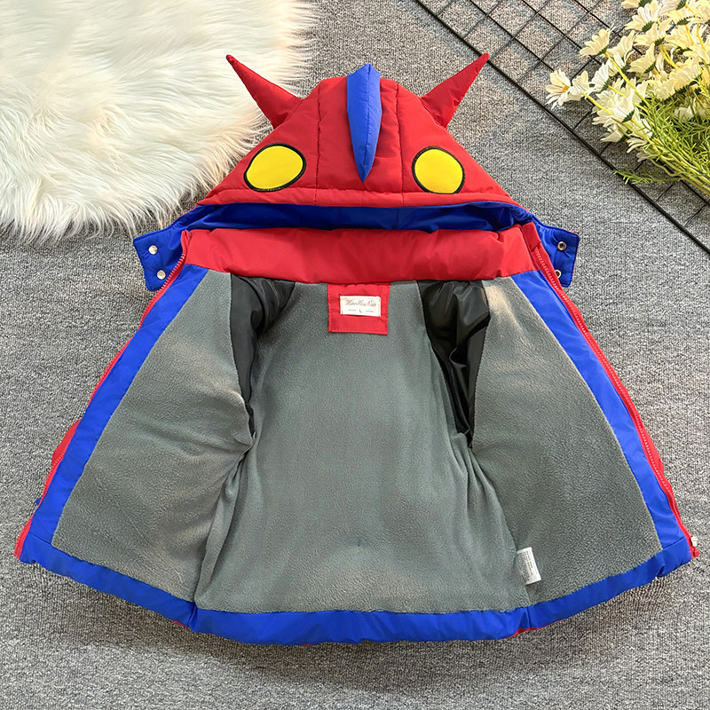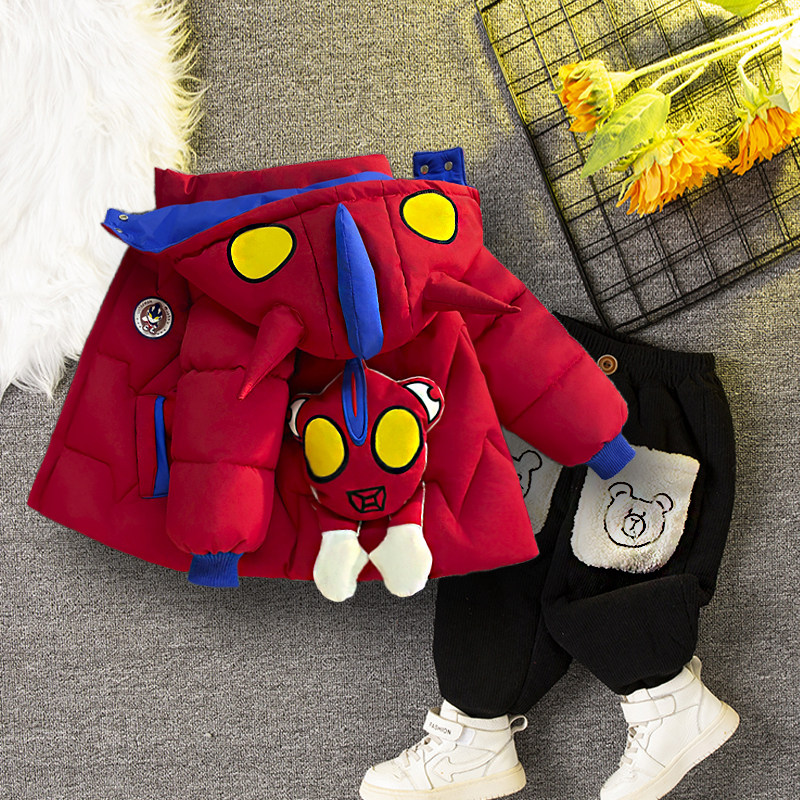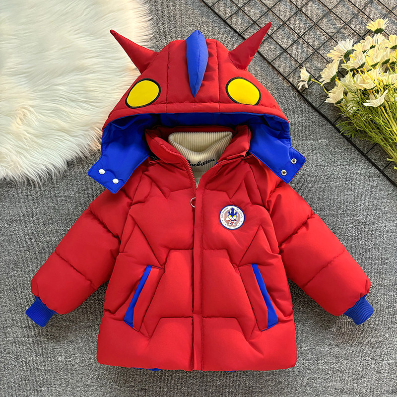 儿童奥特曼羽绒棉服套装男童加绒加厚保暖脱帽外套冬装洋气棉衣套