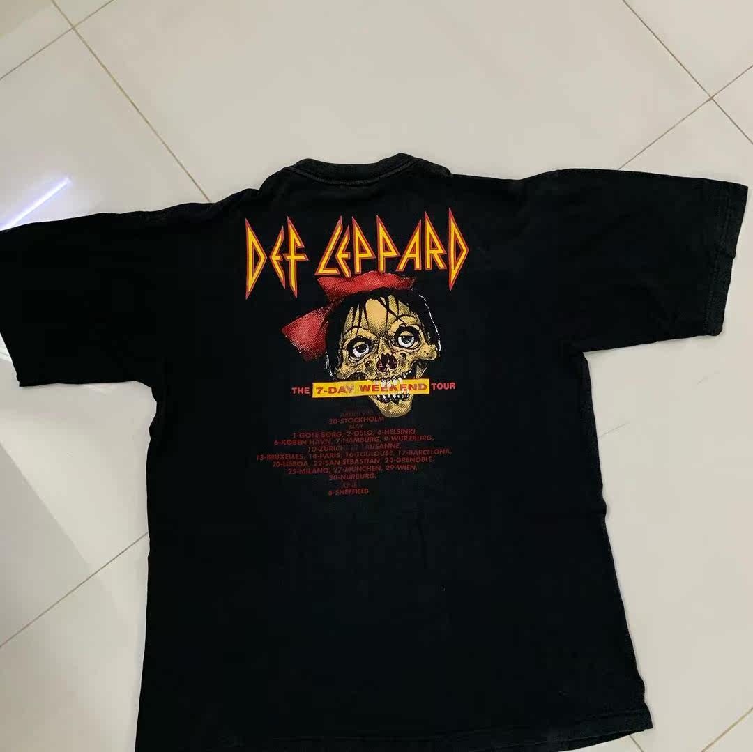 DEFLEPPARD威豹乐队OS风男女情侣短袖街头潮流五分袖重磅棉Tee恤