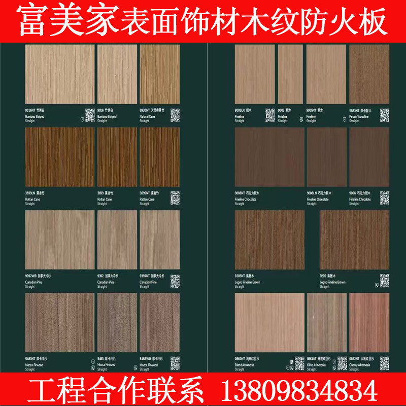 富美家防火板工装商业护墙板饰面耐火板B1级免漆装饰板威盛亚木纹