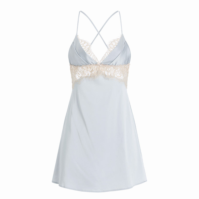 凯朱莉性感睡衣女款春夏2026新款纯欲冰丝蕾丝带胸垫吊带睡裙套装