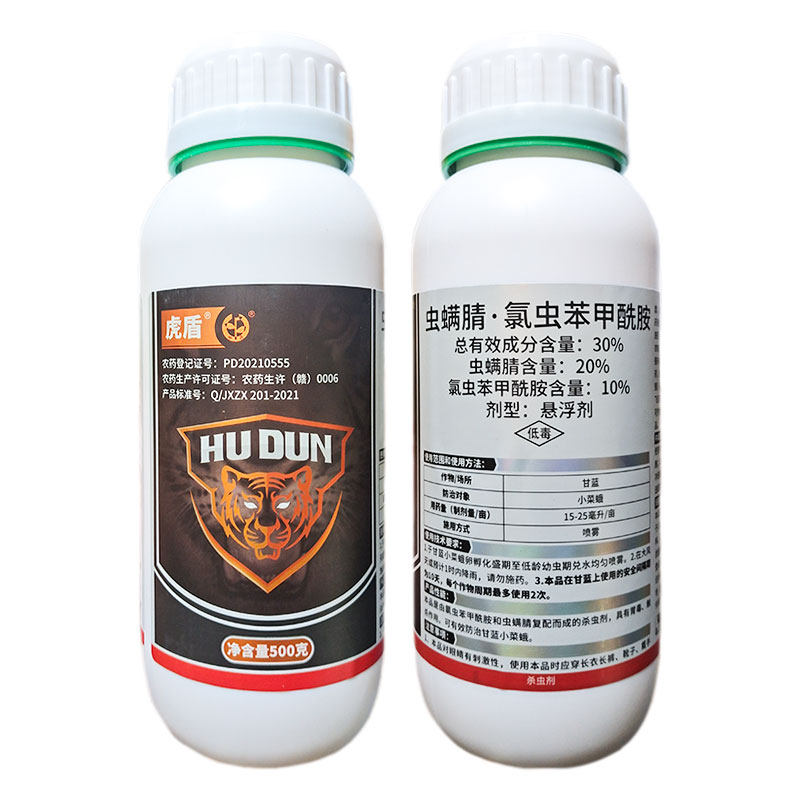 中迅虎盾30%虫螨腈氯虫苯甲酰胺先胺铣胺小菜蛾吊丝虫杀虫剂