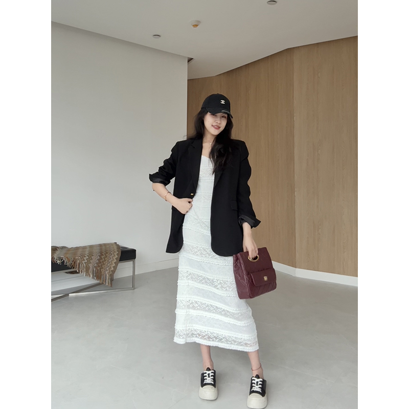 张阿星【月光织梦】轻法风蕾丝拼接收腰V领吊带连衣裙 W425Q01407