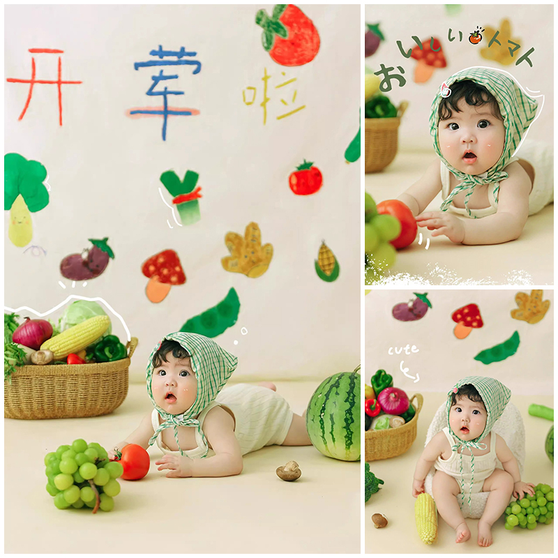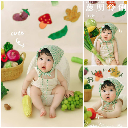儿童摄影服装开荤仪式主题宝宝百天照周岁照拍照衣服水果道具摆件