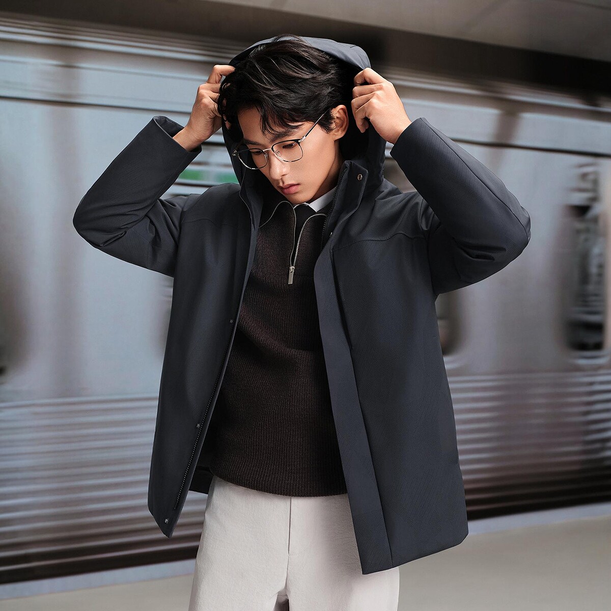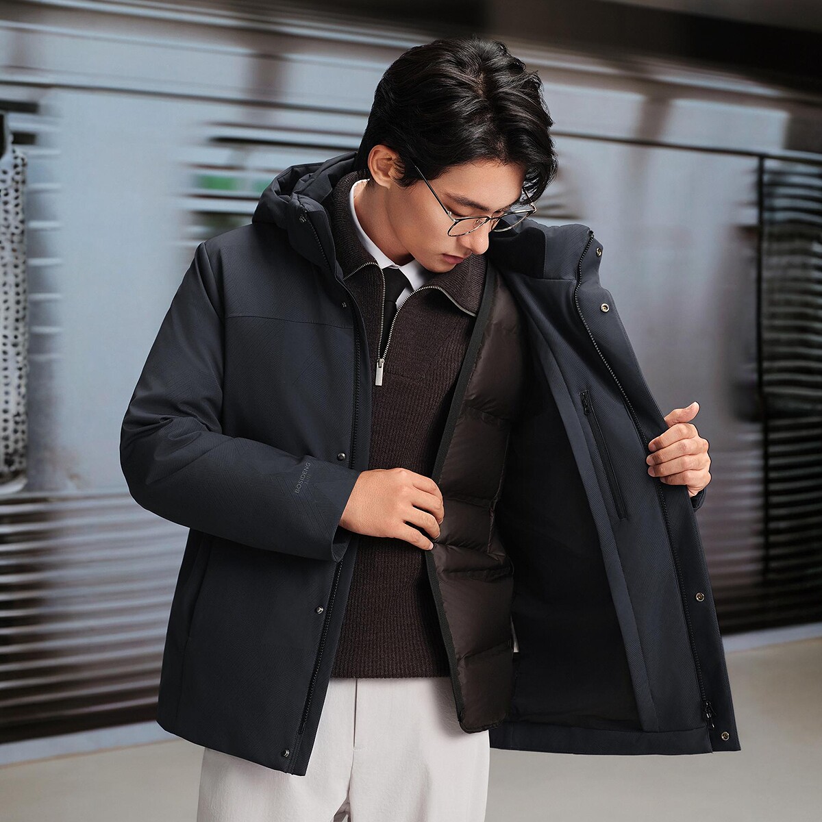 波司登2025新款男经典商务鹅绒连帽内胆可脱卸简约有型羽绒服