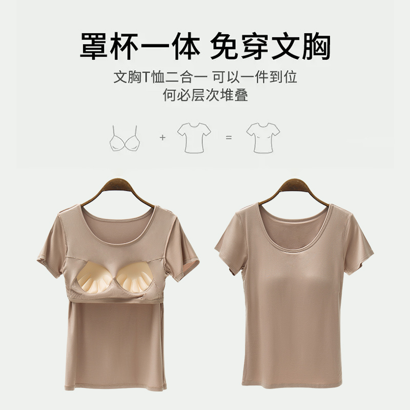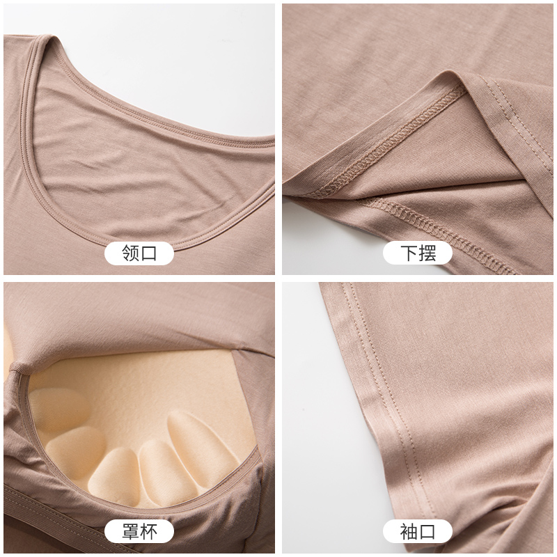 女士莫代尔短袖打底上衣内衣带胸垫一体防下垂文胸聚拢防走光大码
