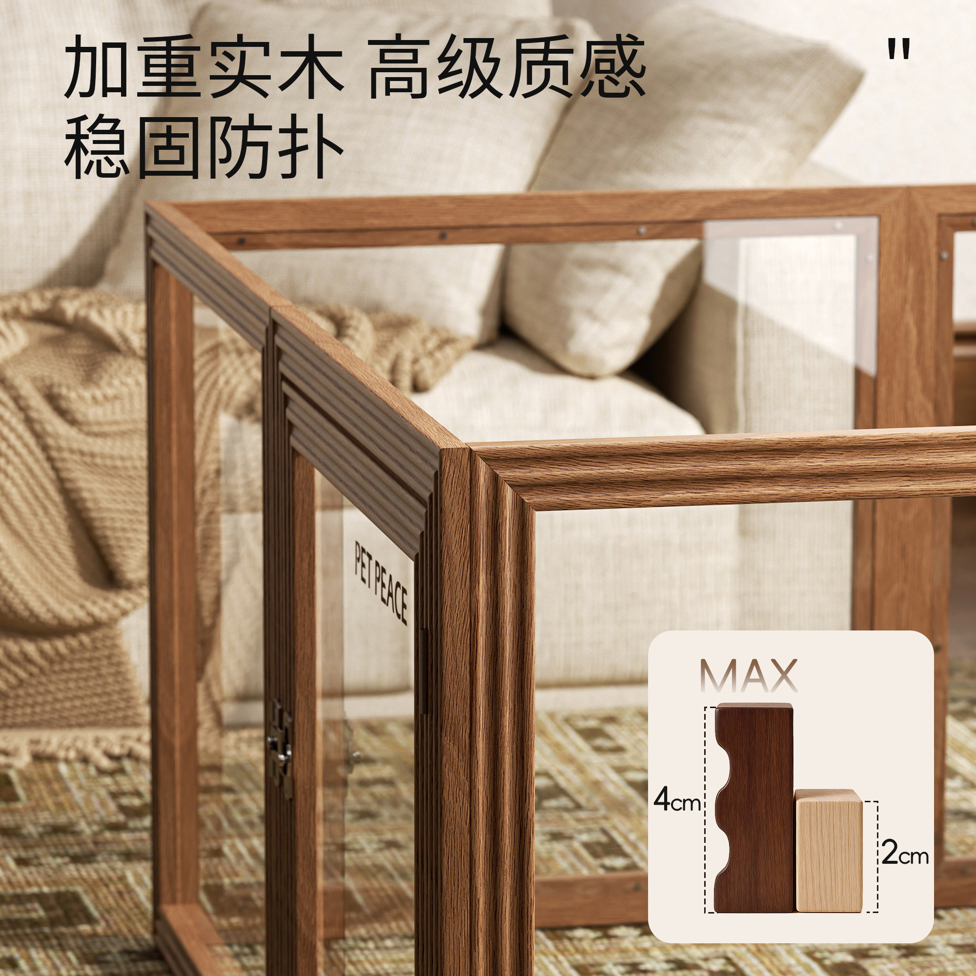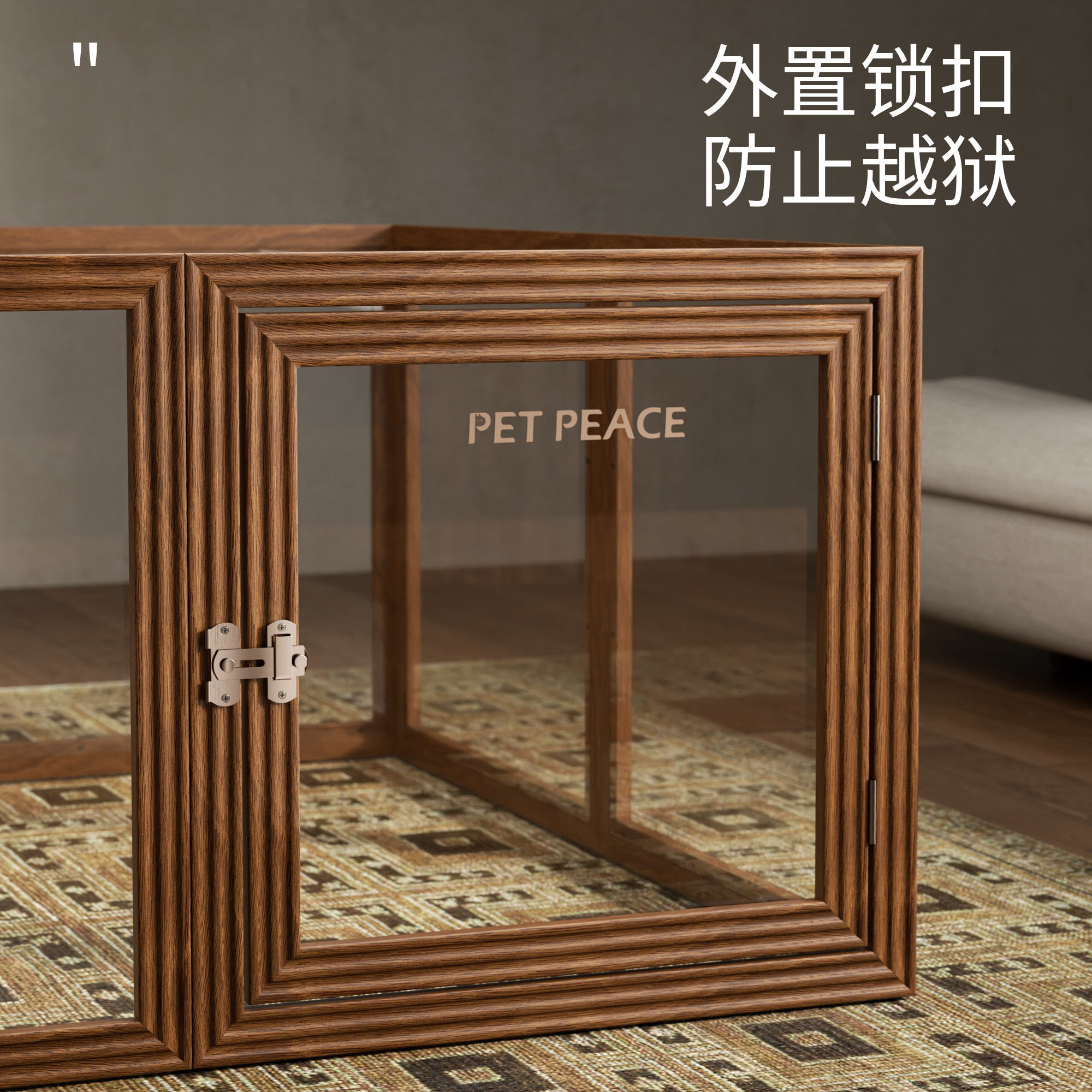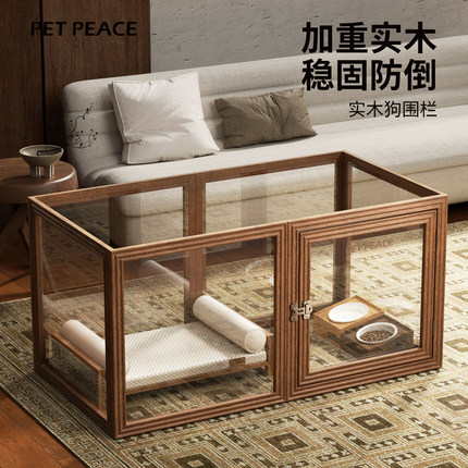 Petpeace实木透明狗狗围栏亚克力狗窝宠物栅栏小型犬狗笼子中古风