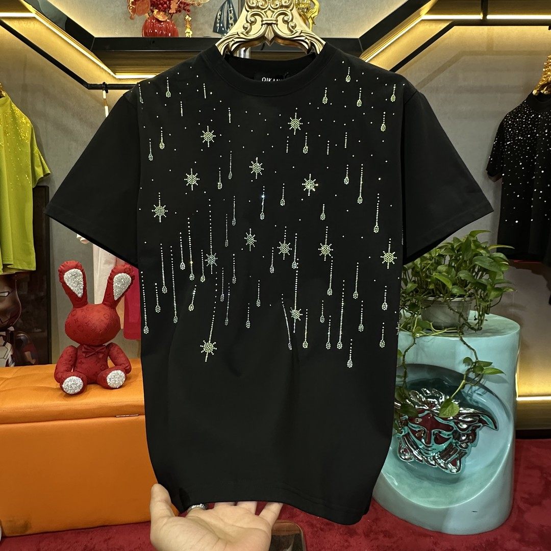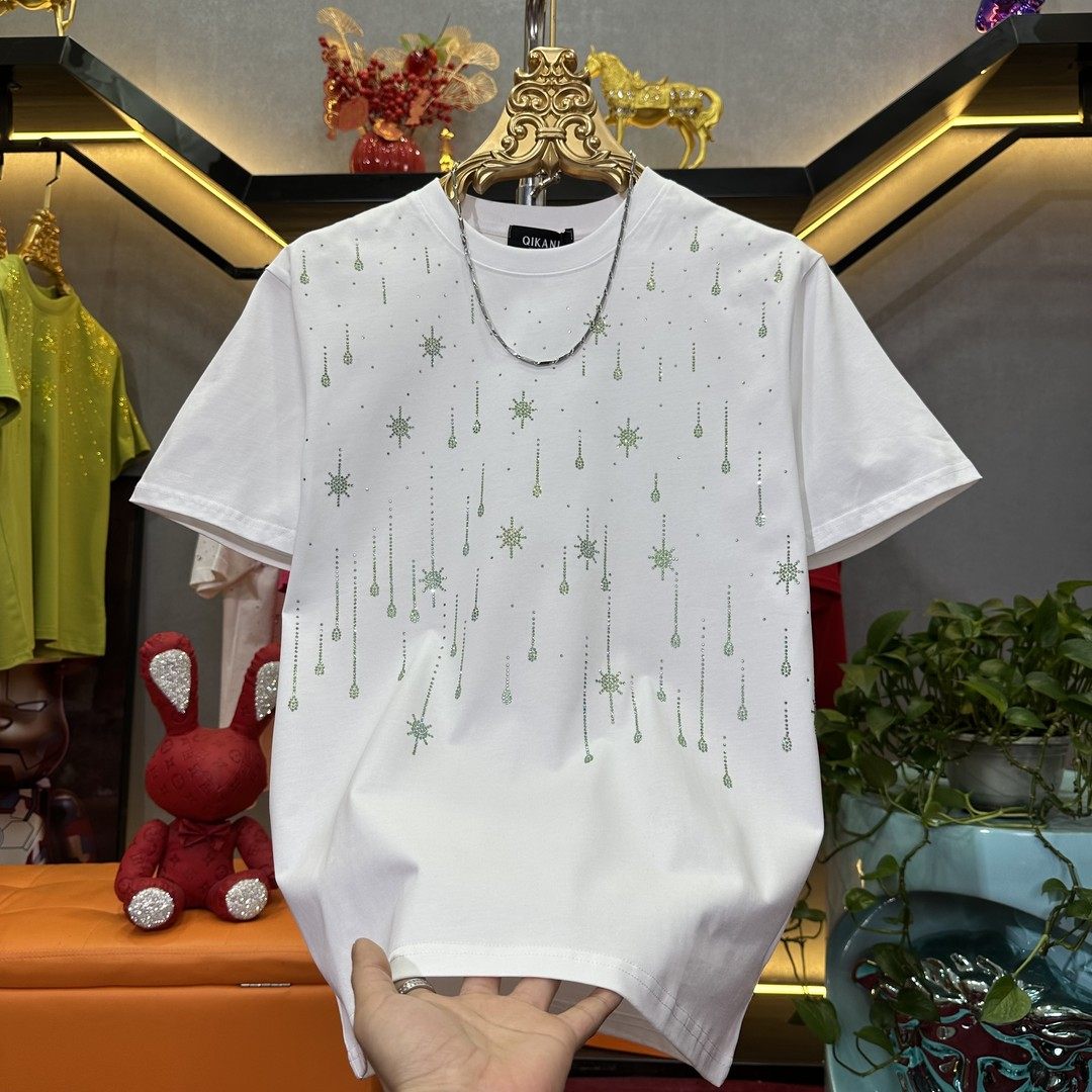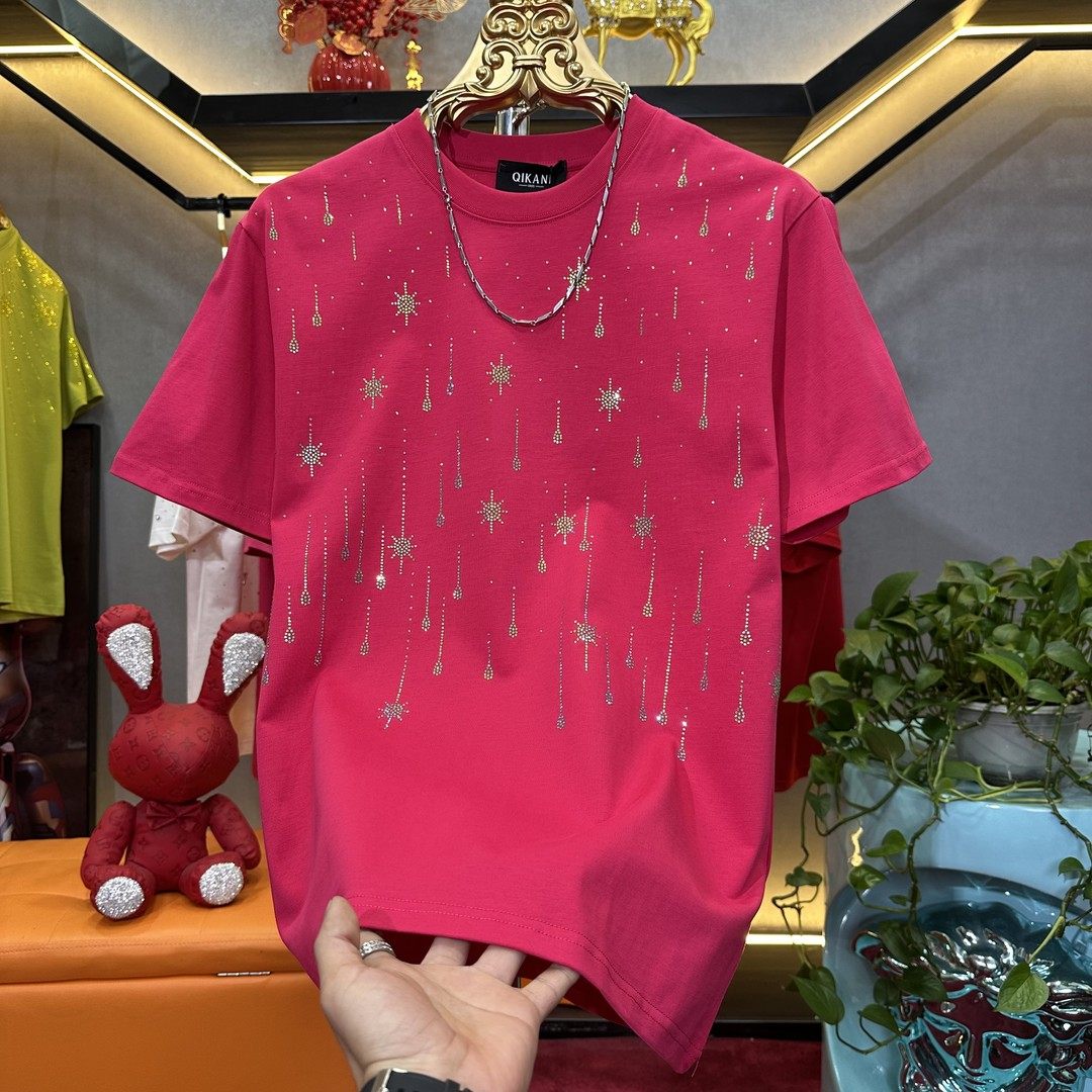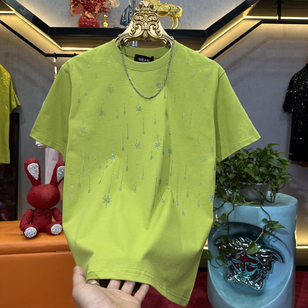 潮流亮片烫钻小众设计感短袖T恤男士2025夏季款韩版圆领显瘦半袖