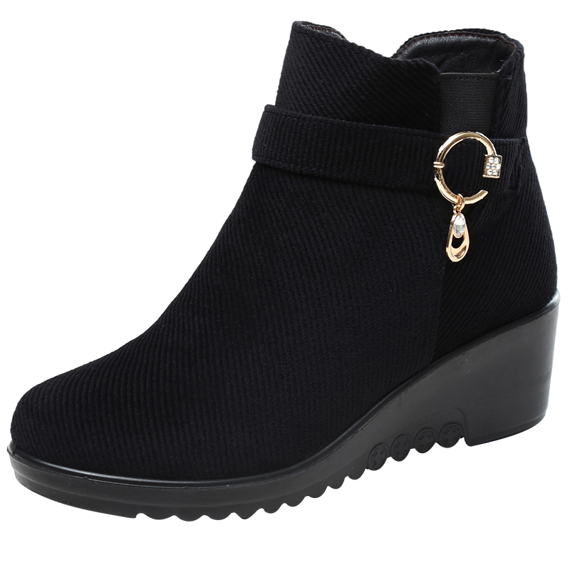 他她女孩妈妈棉鞋冬季新款短靴中老年人加绒保暖软底防滑坡跟中年