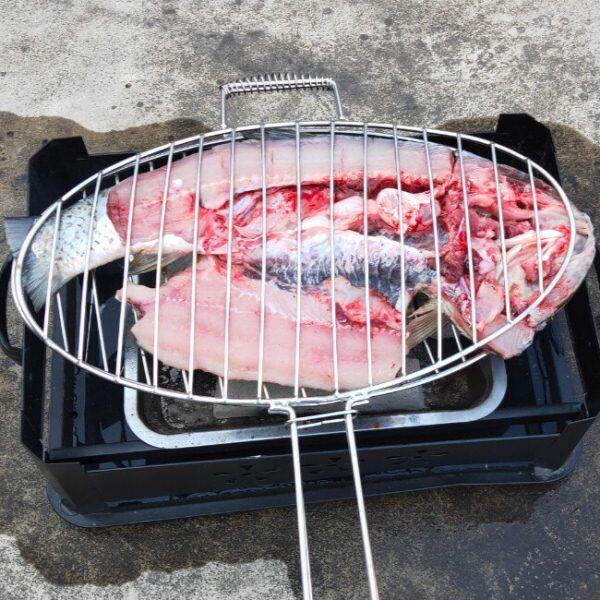不锈钢烤鱼夹子烤鱼架烧烤网烧烤用具商用加粗大号烤肉不绣钢网夹