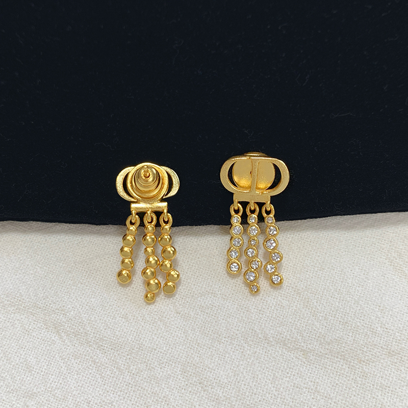 奥米迪奥字母CD链条流苏镶钻耳钉女小众气质高级时尚百搭耳环耳饰