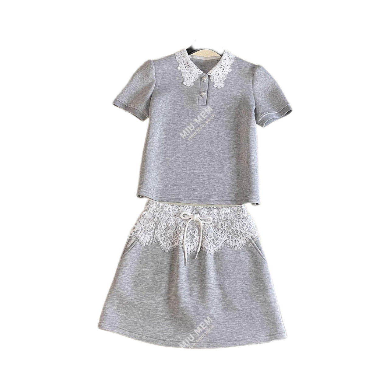 深圳南油高端女装夏季新款蕾丝翻领短袖卫衣+半裙休闲运动套装