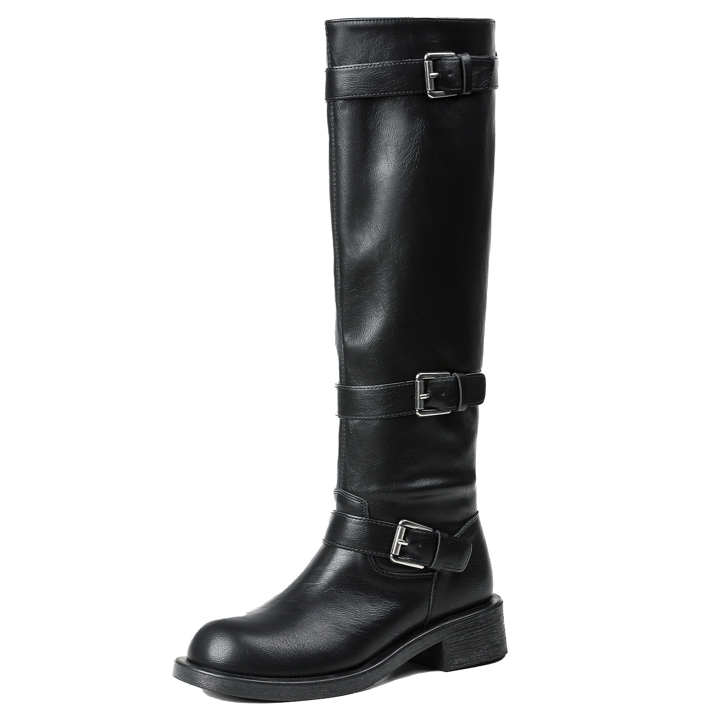 胖mm粗腿西部长筒靴女粗跟皮带扣大筒围加宽骑士靴大码长靴41到43