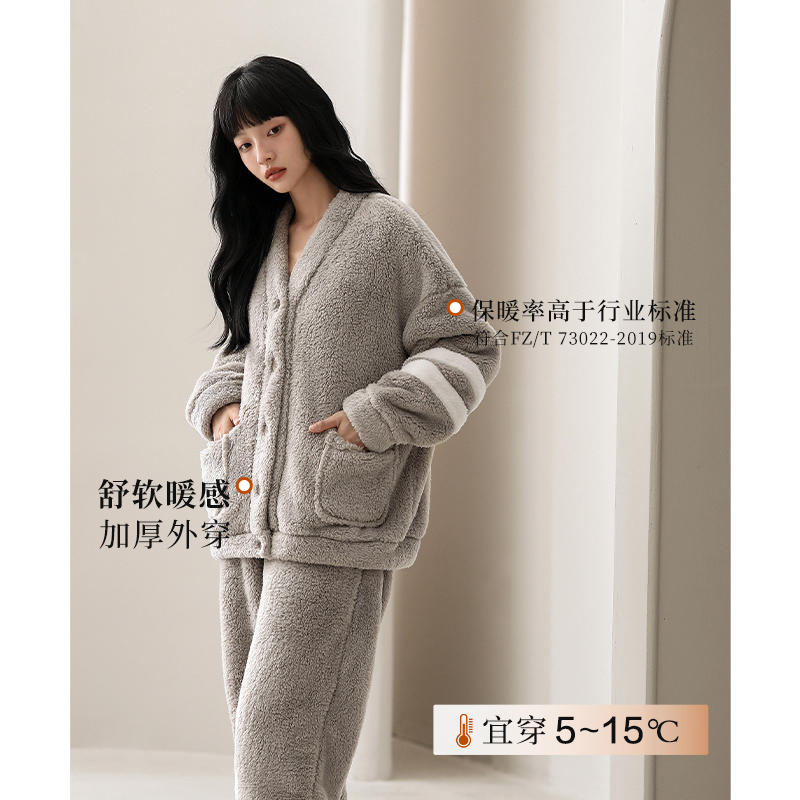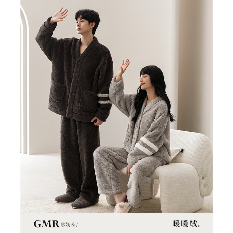 情侣睡衣女冬季加绒加厚珊瑚绒秋冬款可出门大码保暖外套家居服男