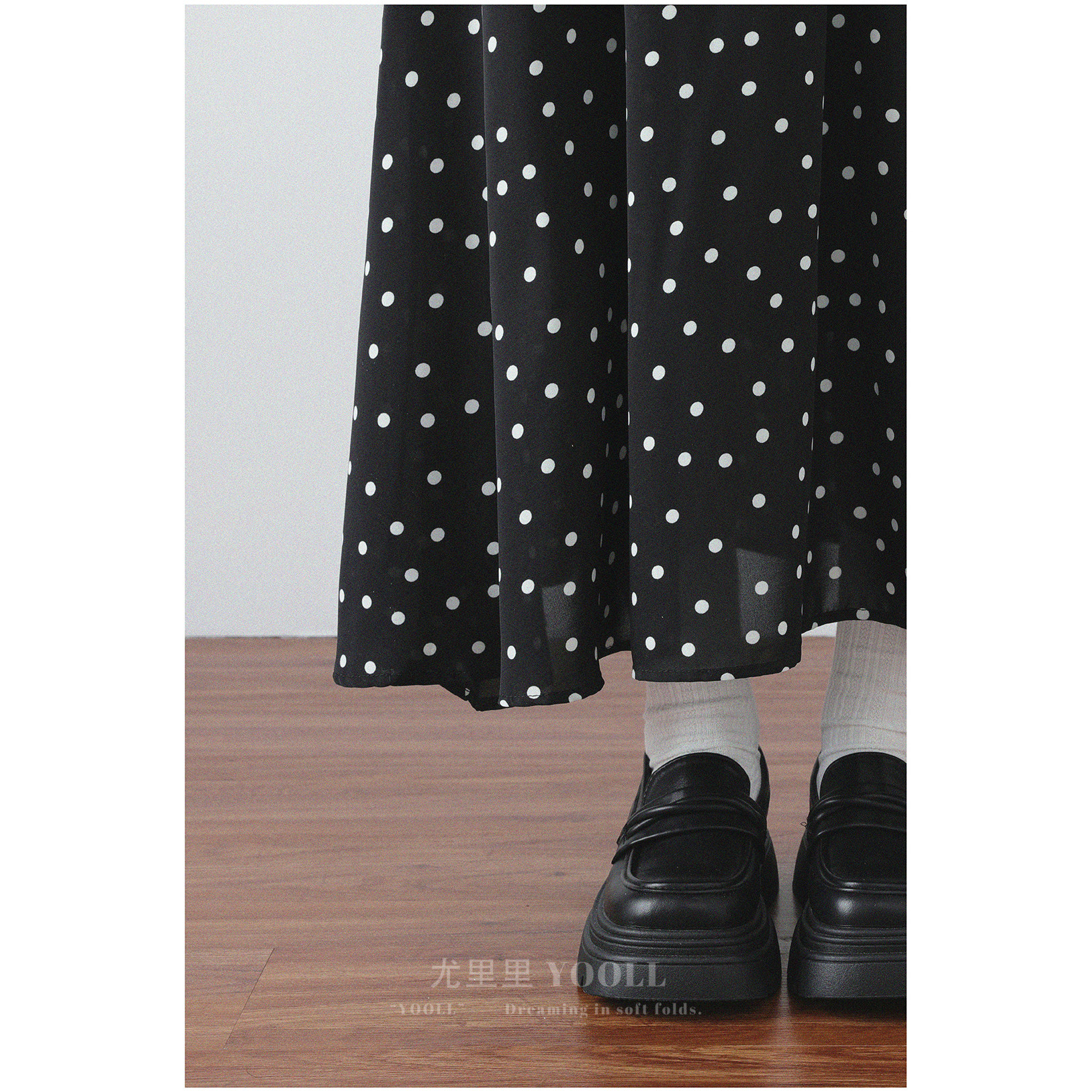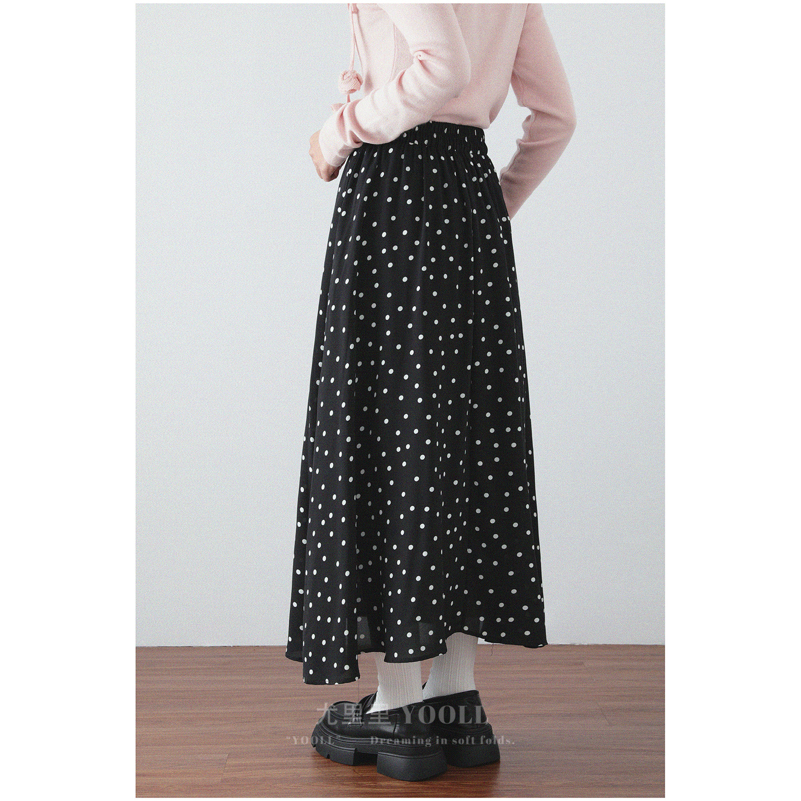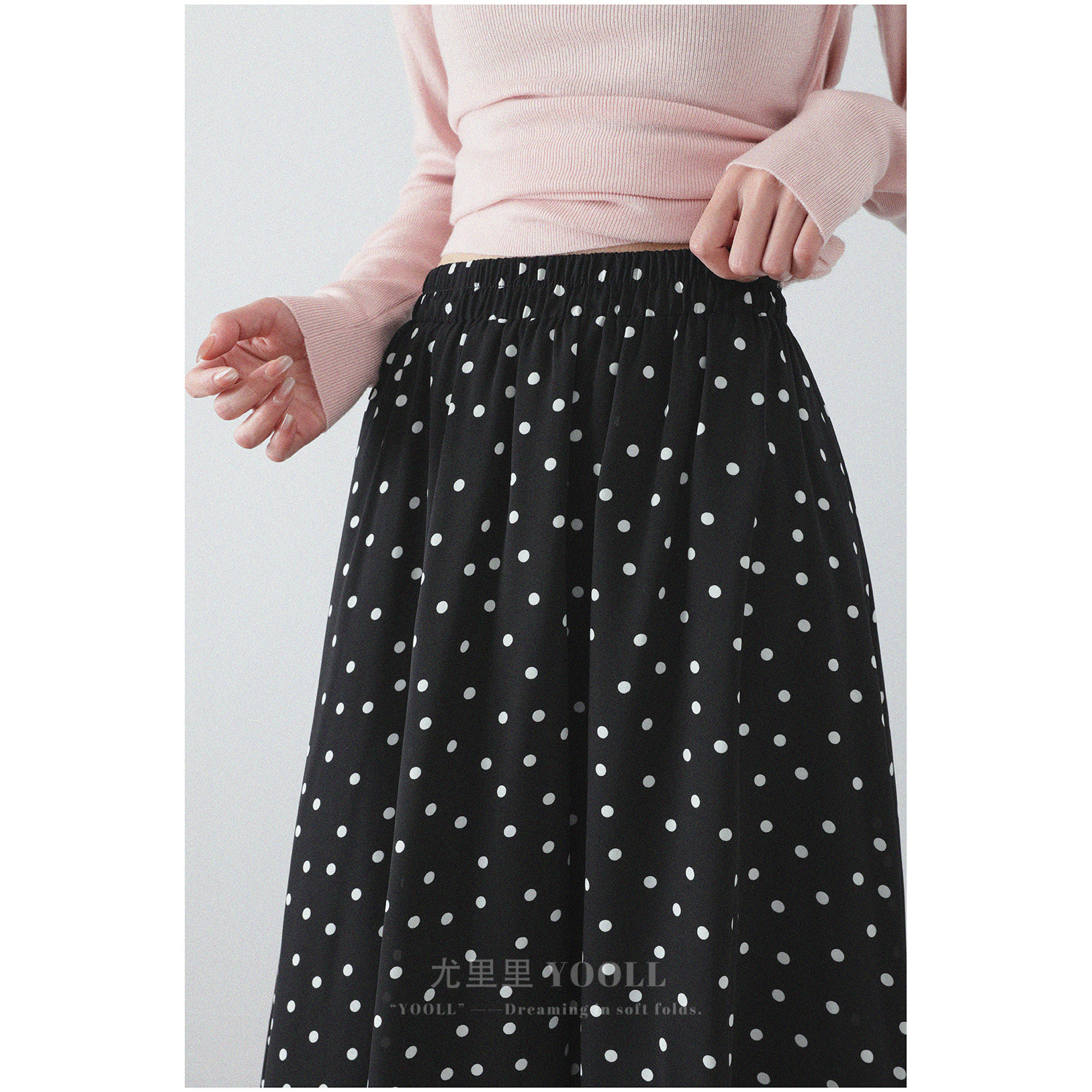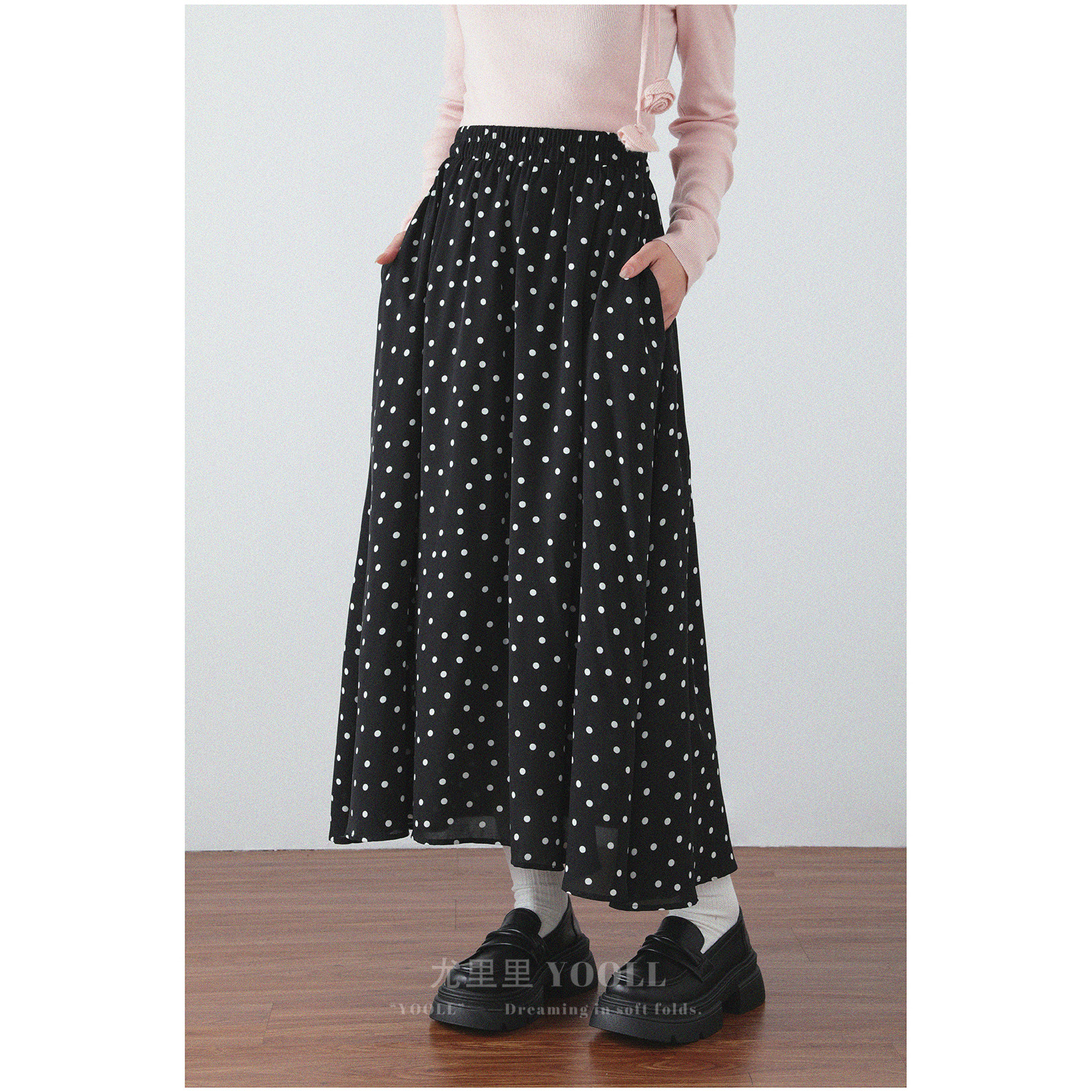 雪纺柔软飘逸薄款波点半身裙春夏新款高腰显瘦透气复古优雅长裙女