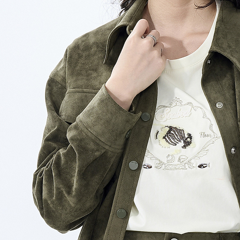 曼诺比菲商场同款2025春秋季慵懒风薄款翻领长袖衬衫外套