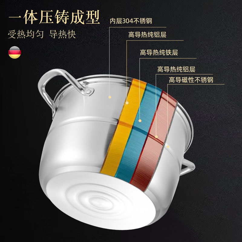 304蒸锅不锈钢超厚大容量家用商用汤锅两层三层电磁炉煤气炉通用