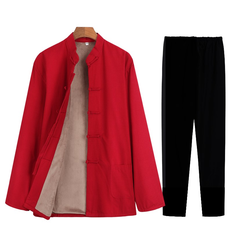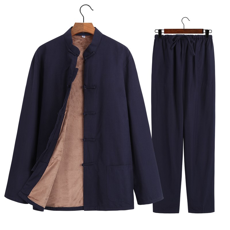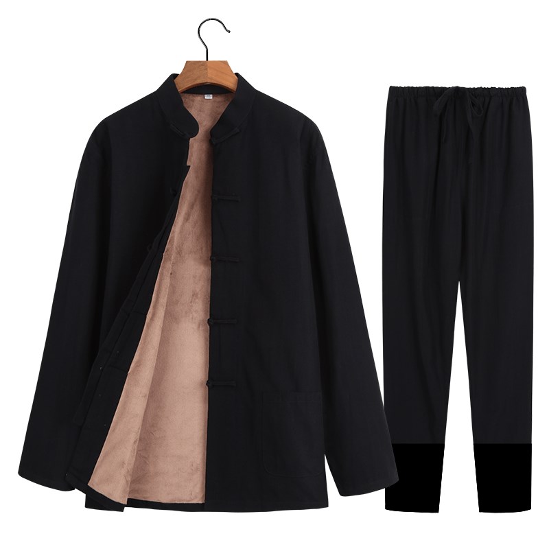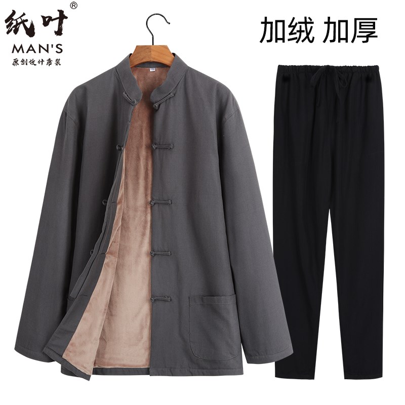 中国风唐装汉服男装冬季中老年外套套装保暖棉衣加绒抓绒休闲古装