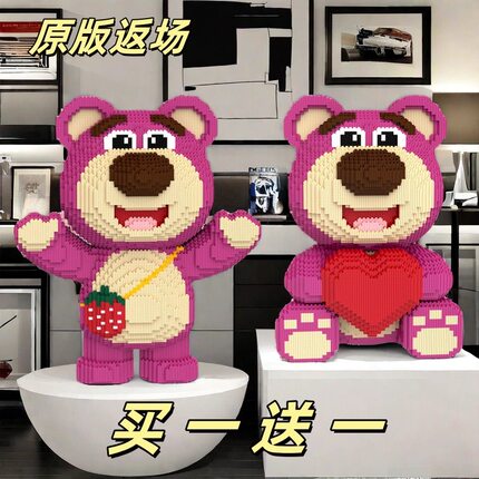 草莓熊积木玩具8一12岁益智拼装高难度小颗粒国潮男女孩系列礼物