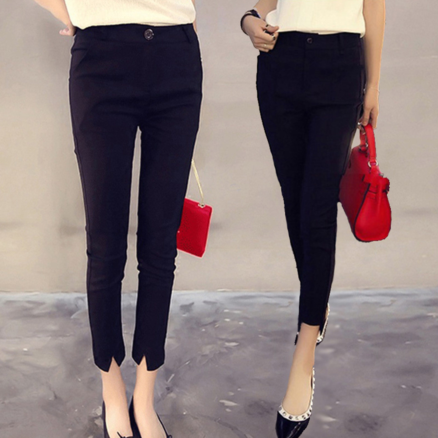 黑色弹力春夏秋冬百搭新款韩版裤子女休闲高腰薄款铅笔小脚九分裤