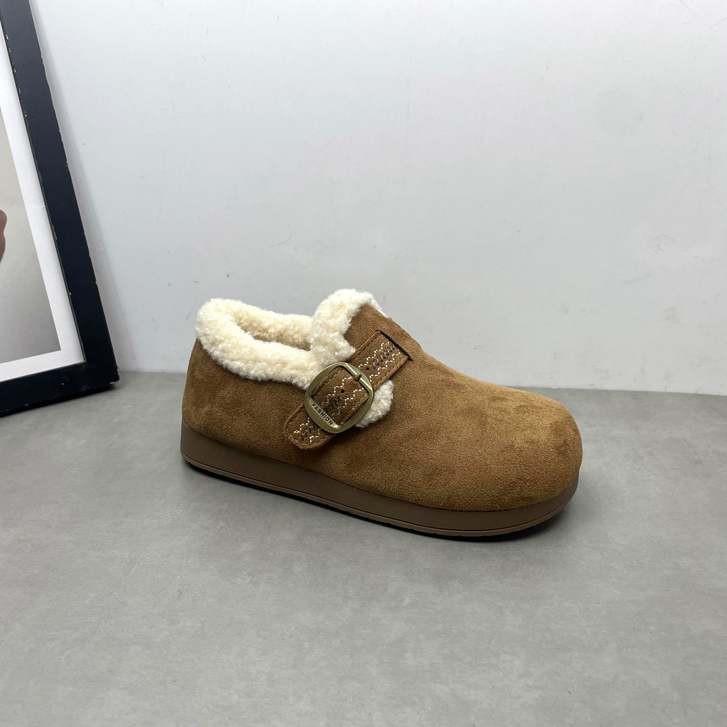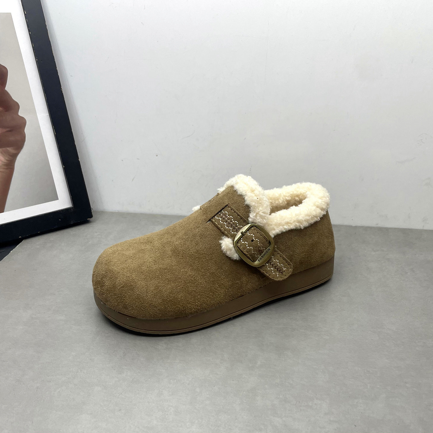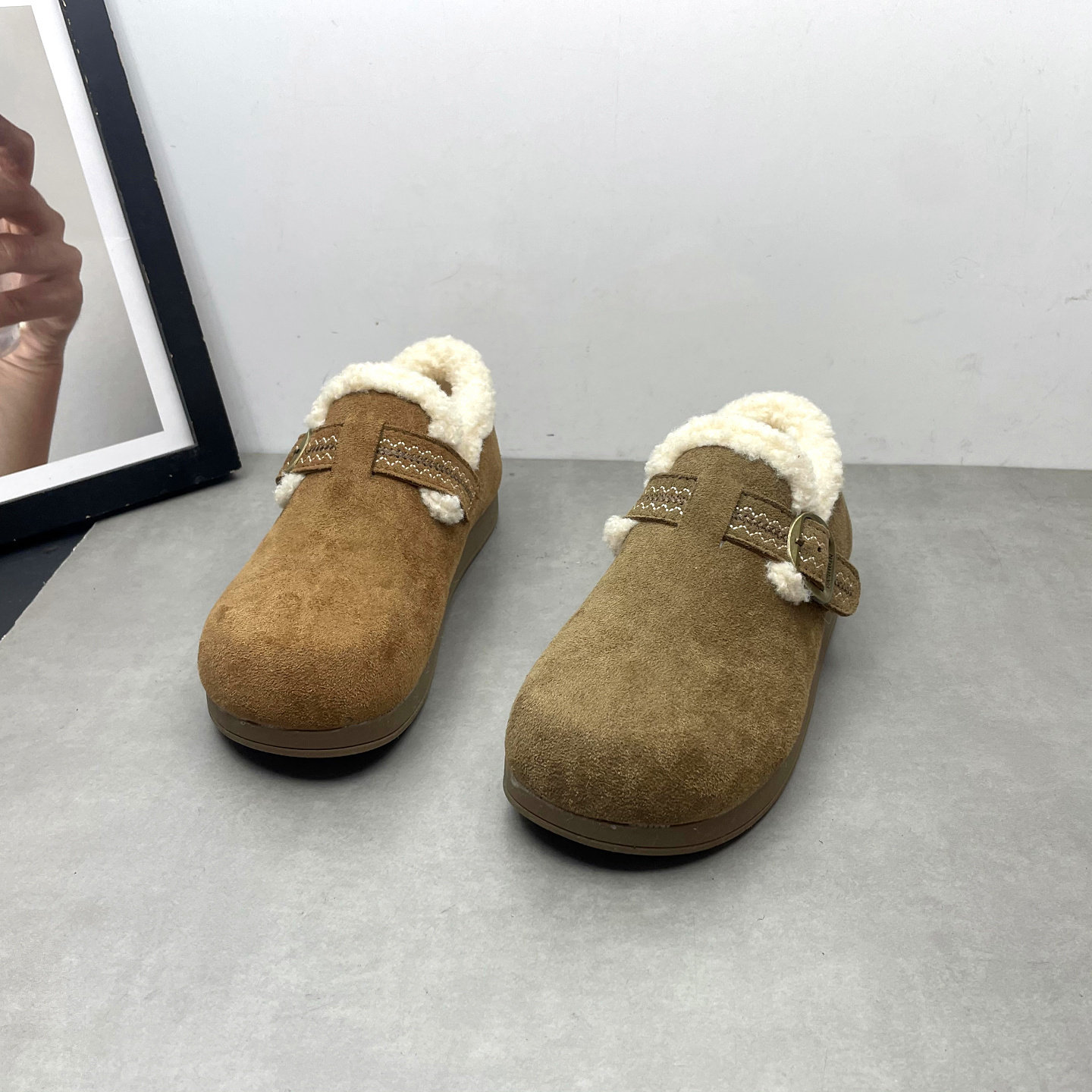 2025冬季新款女鞋加绒保暖一脚蹬平底防滑英伦风勃肯鞋时尚女棉鞋