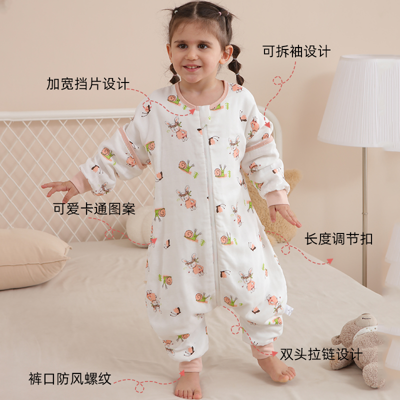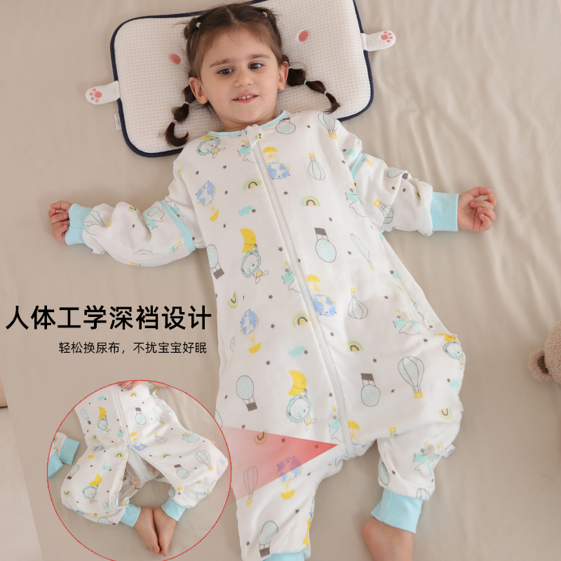 婴儿纱布睡袋夏季薄款宝宝纯棉分腿睡袋新生儿童防踢被四季通用