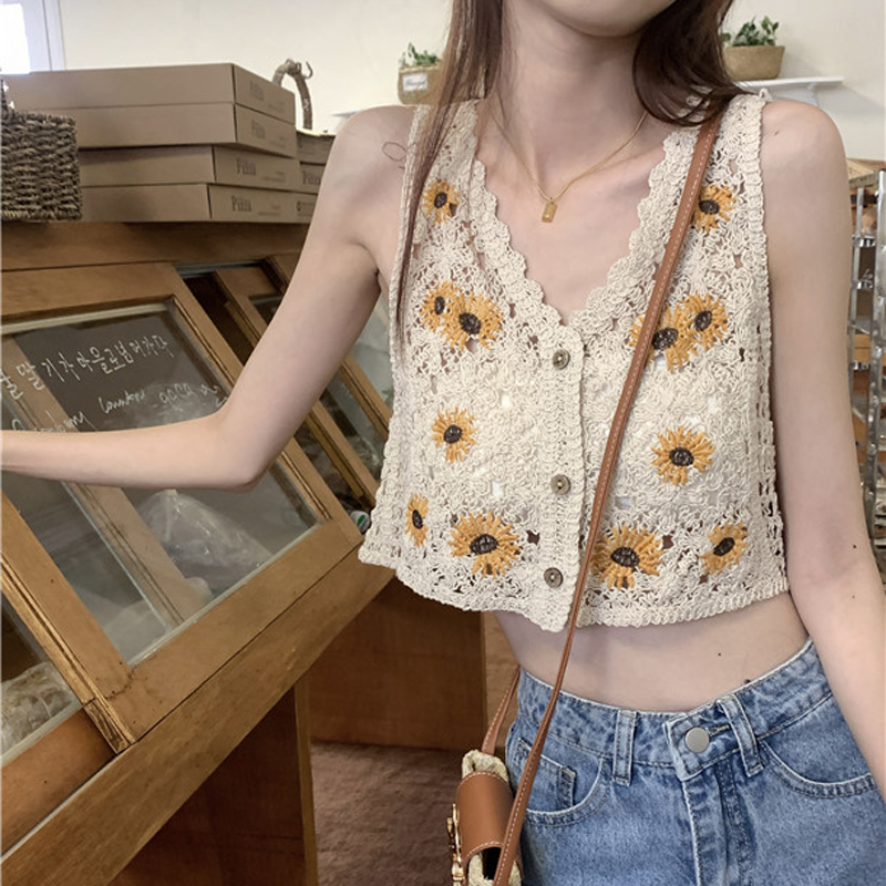 镂空背心开衫女法式小众设计感马夹小外搭刺绣针织披肩无袖上衣