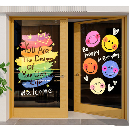 创意笑脸网红玻璃门贴纸布置奶茶甜品店服装美容院店橱窗装饰贴画