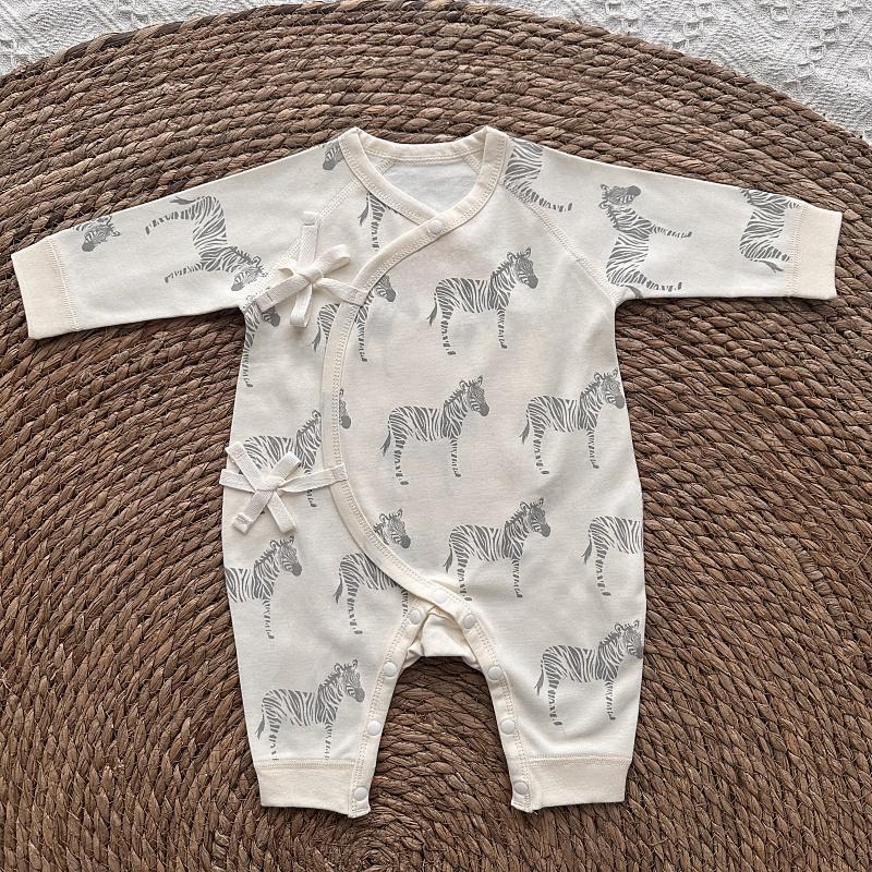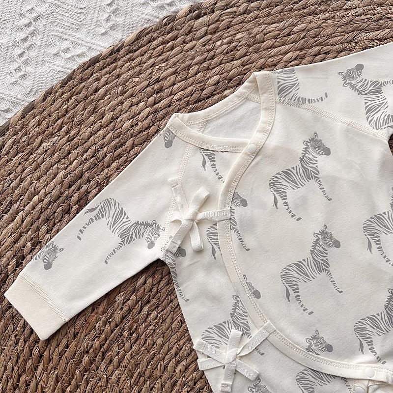 新生儿长袖薄款斑马绑带连体哈衣