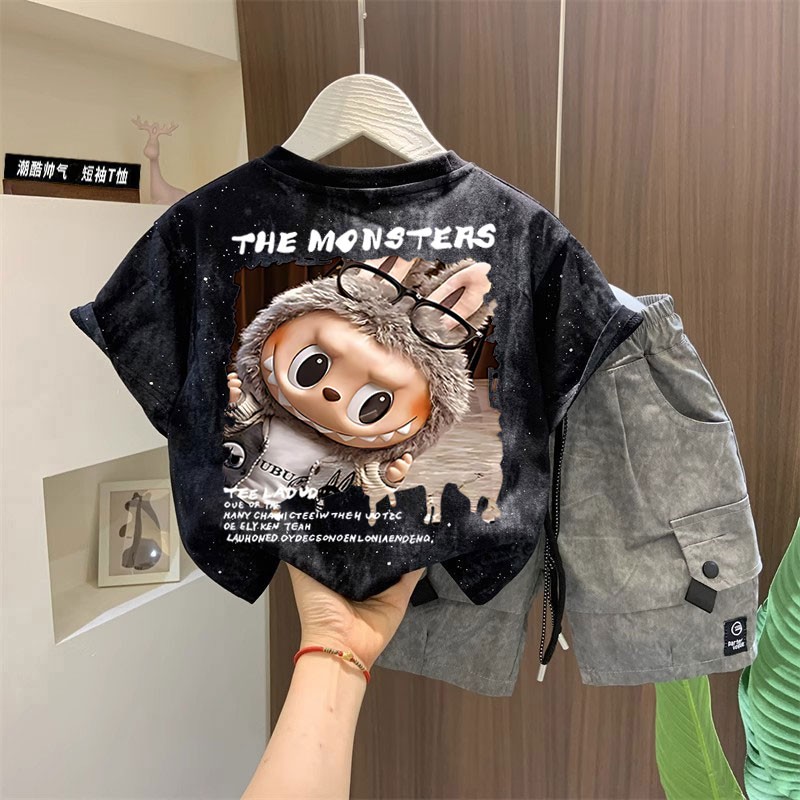 儿童夏季新款两件套男童洋气布布短袖T恤中大童韩系扎染短袖套装