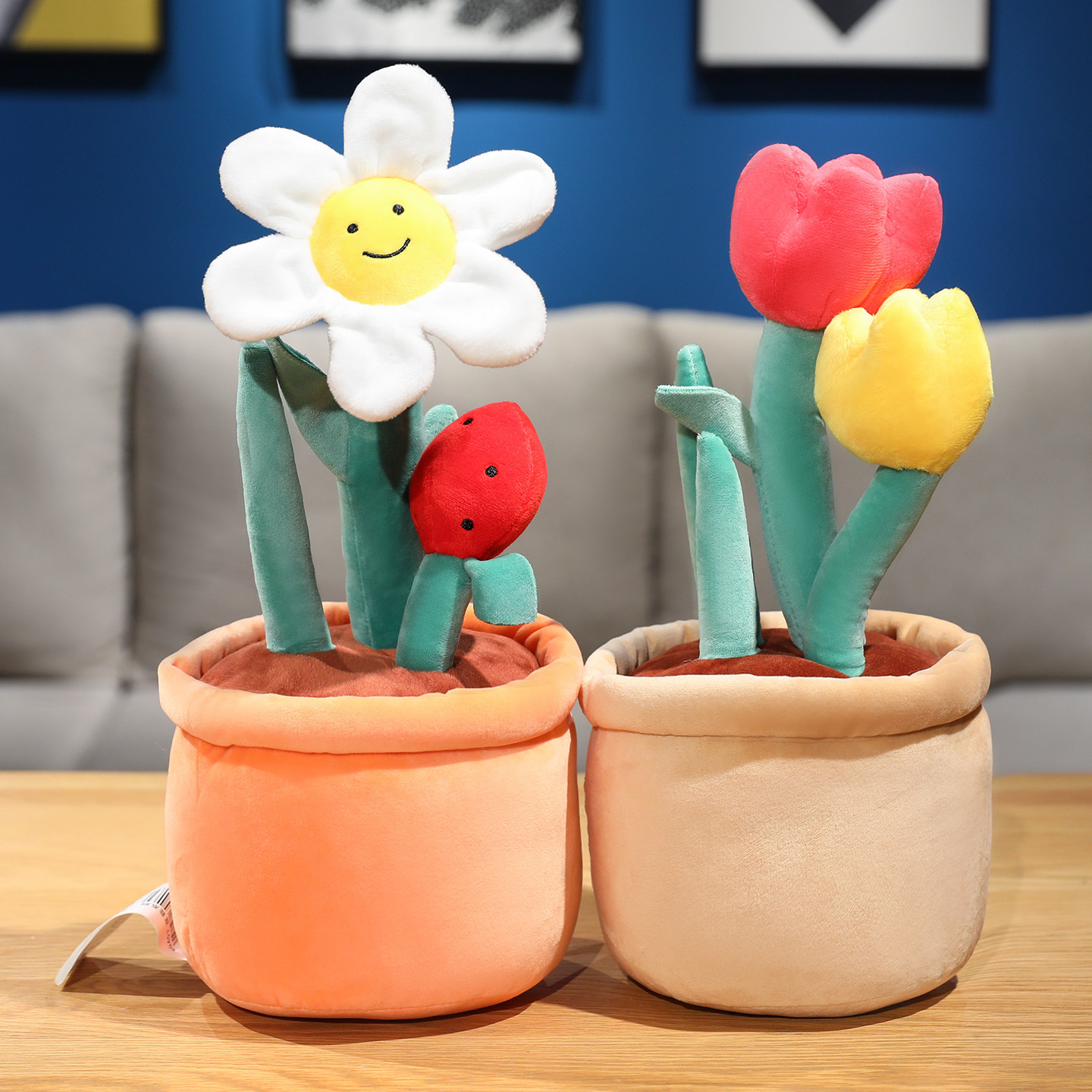 正版盆栽系列太阳花郁金香多肉仙人掌毛绒玩具植物玩偶公仔摆件