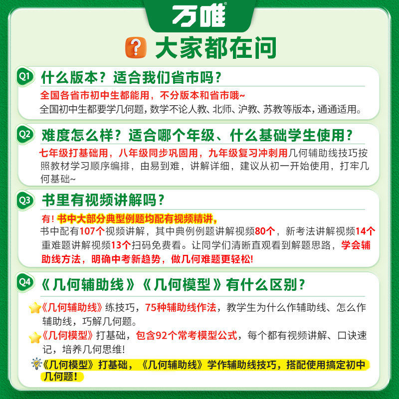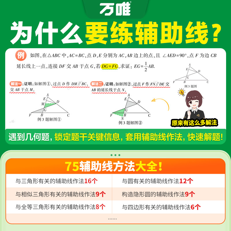 2026万唯中考几何辅助线秘籍几何模型初中数学专项训练中学教辅资料题几何模型万维解题技巧方法大全