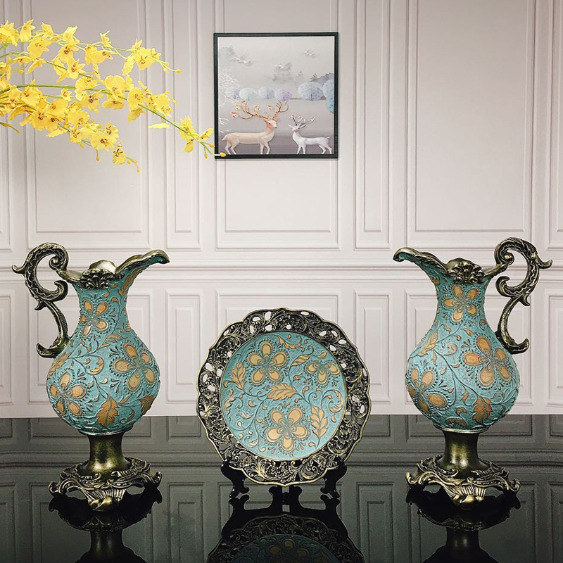 欧式奶壶花瓶摆件客厅插花干花复古创意高档奢华电视柜玄关装饰