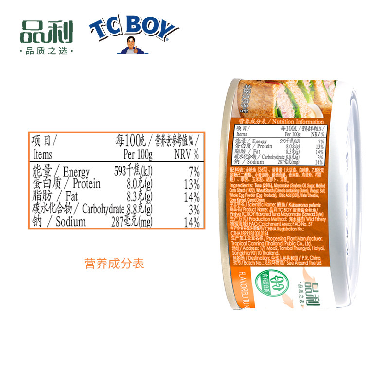 品利TCBOY蛋黄酱金枪鱼180g泰国原装进口即食