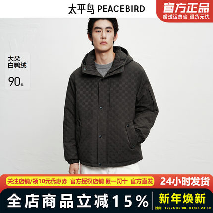 太平鸟男装 连帽羽绒服25年冬季新款保暖防寒外套派克服BAACF422G