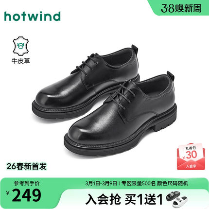 热风男鞋2026年春季新款男士时尚休闲单鞋黑色德比鞋商务正装皮鞋
