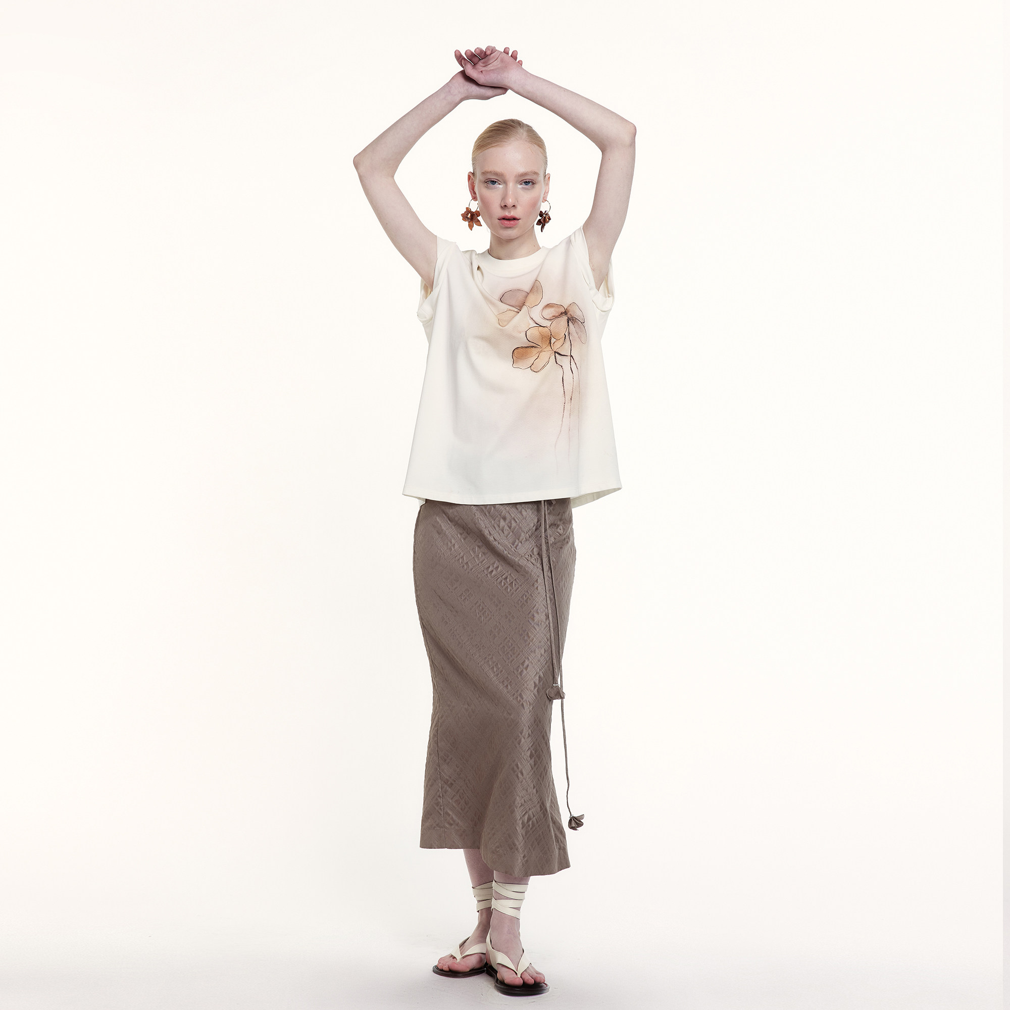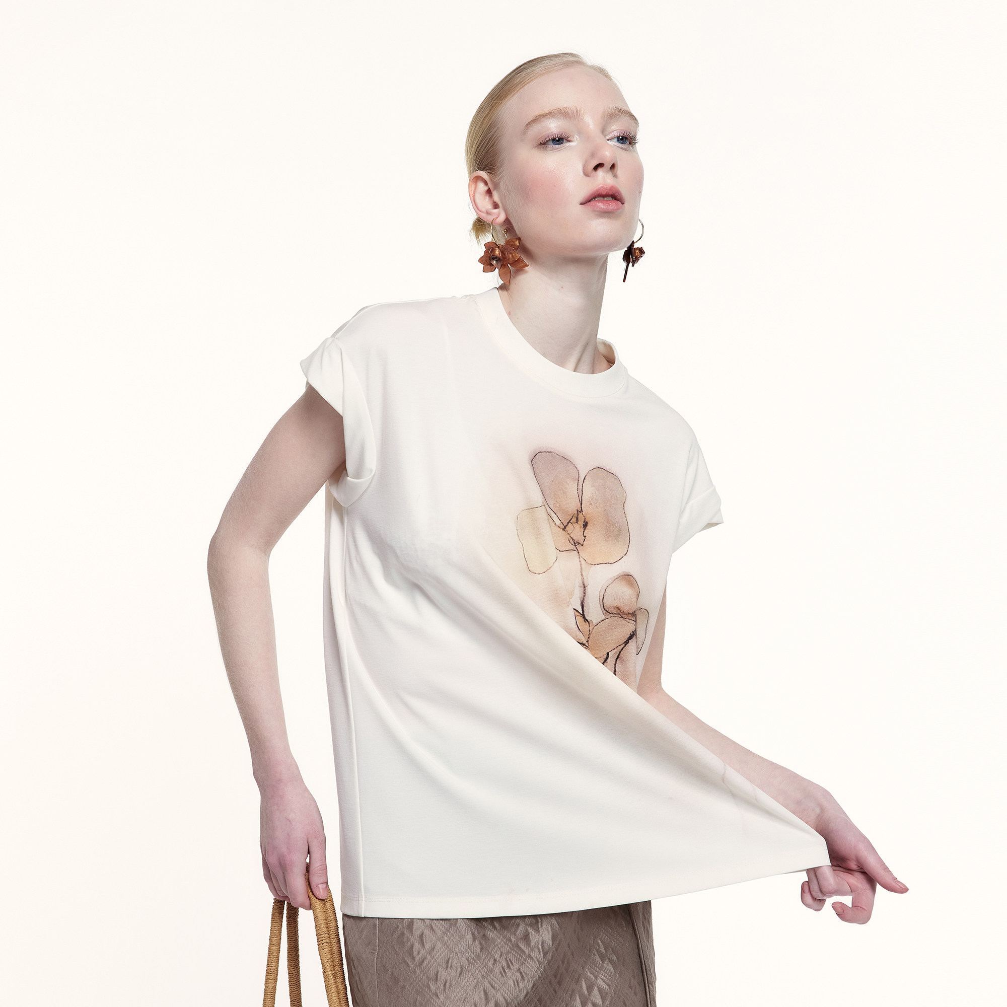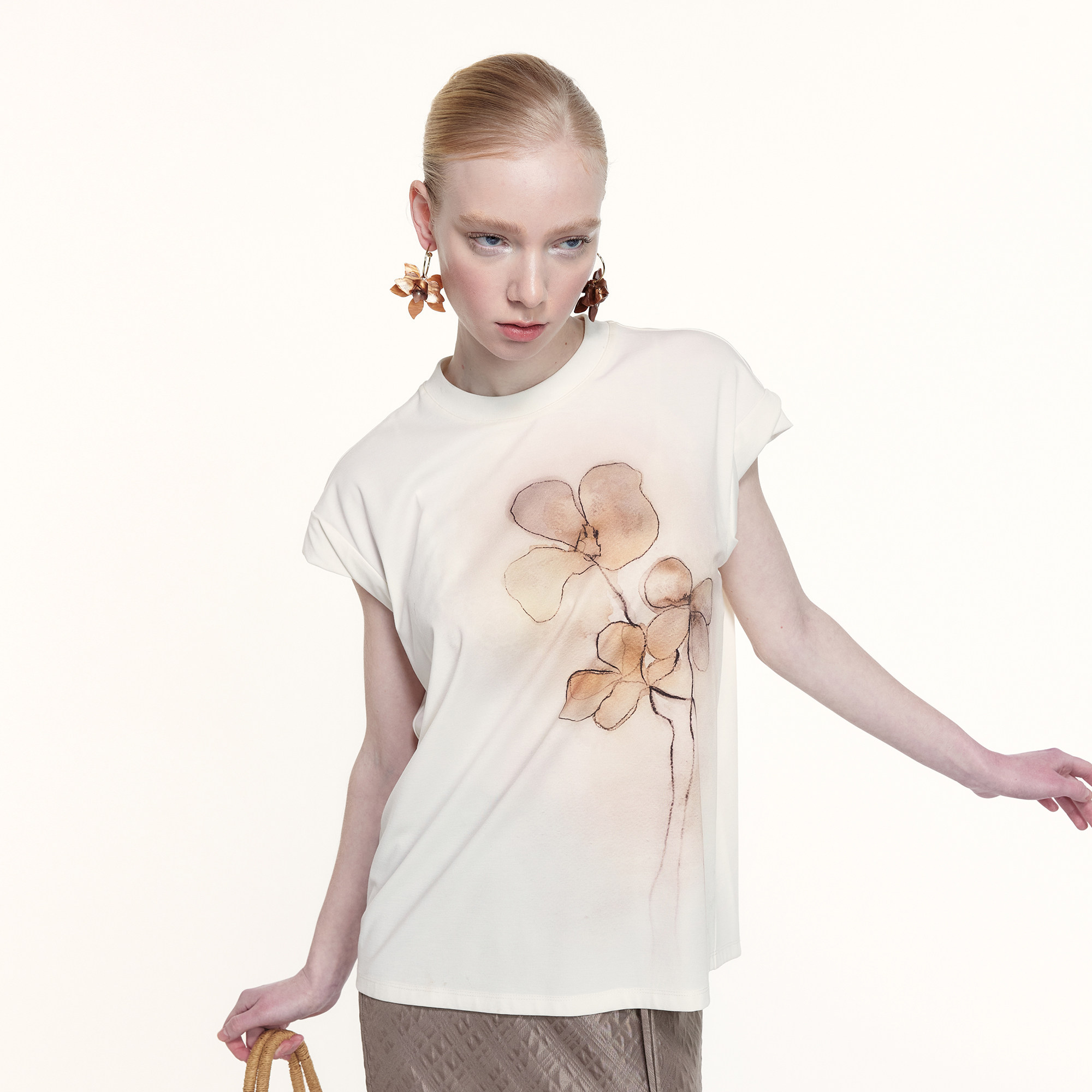 艺之卉云裳印花飞袖T恤花卉印花透气短袖上衣25夏新款