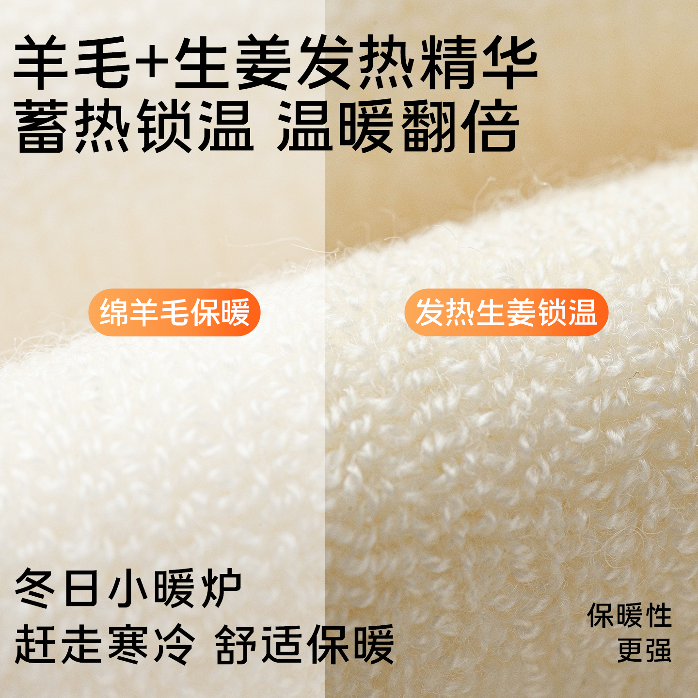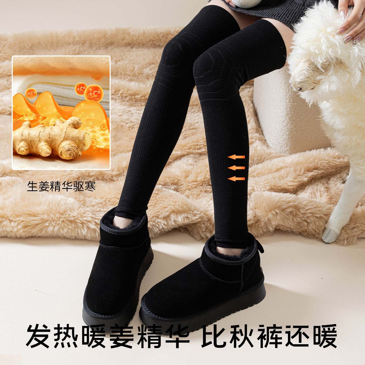 羊毛护膝袜子女秋冬款生姜保暖老寒腿护腿袜套加厚毛圈长筒过膝袜