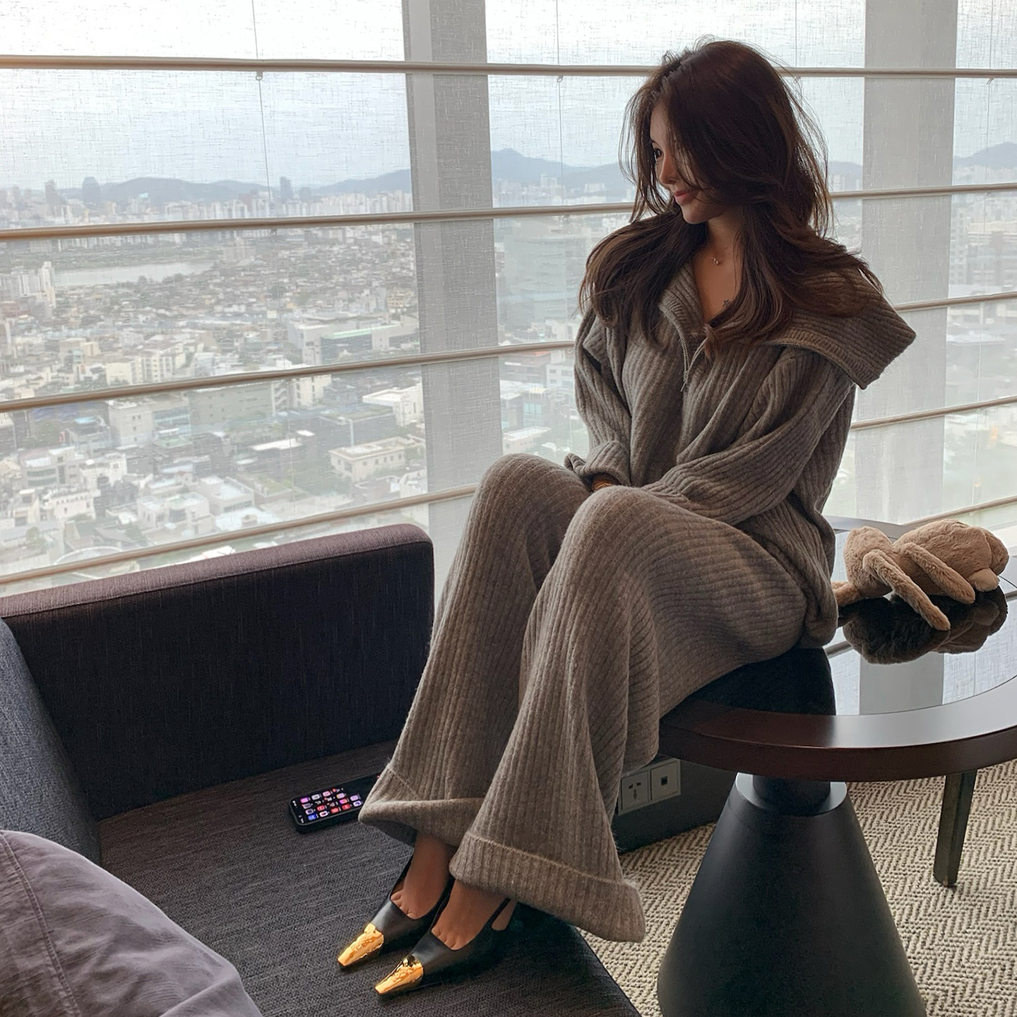 PickRui 睿哥 高街肯豆 慵懒坑条针织毛衣套装女秋季新款宽松时尚