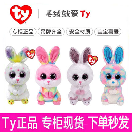 美国ty大眼睛毛绒公仔棉花球白粉拖鞋兔子可爱小白兔玩具大眼豆豆