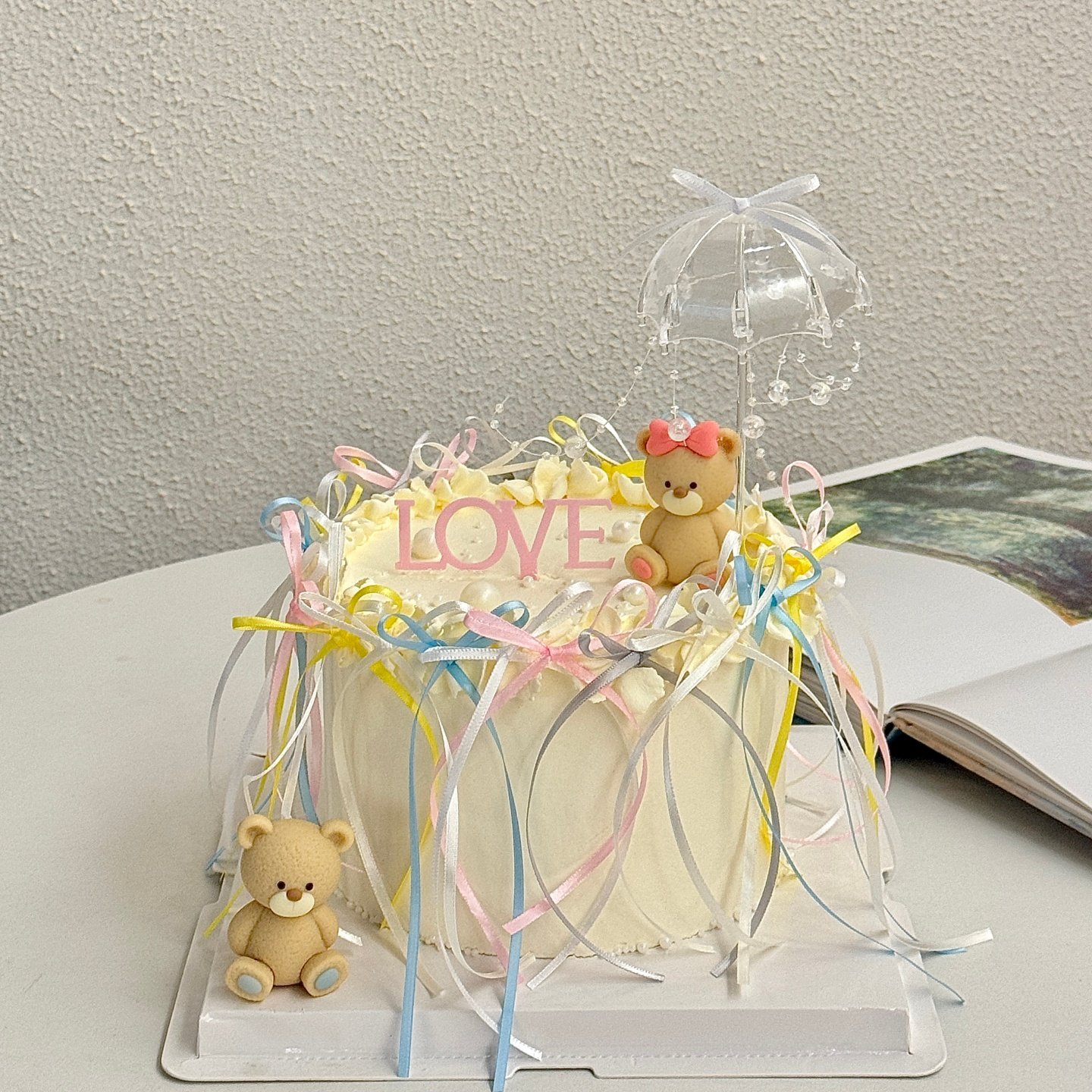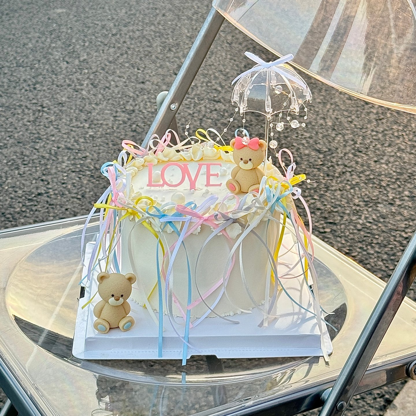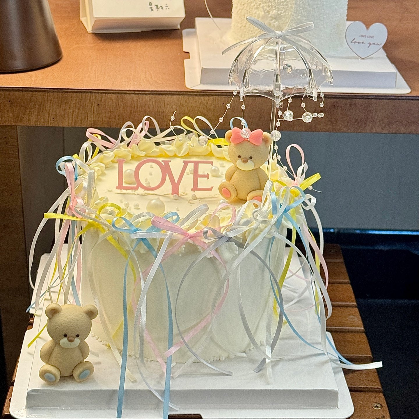 2.14情人节情侣小熊蛋糕装饰摆件LOVE亚克力插牌透明小雨伞装扮
