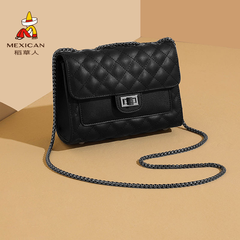 稻草人品牌女包2025新款牛皮菱格链条包包女斜挎包百搭单肩包正品