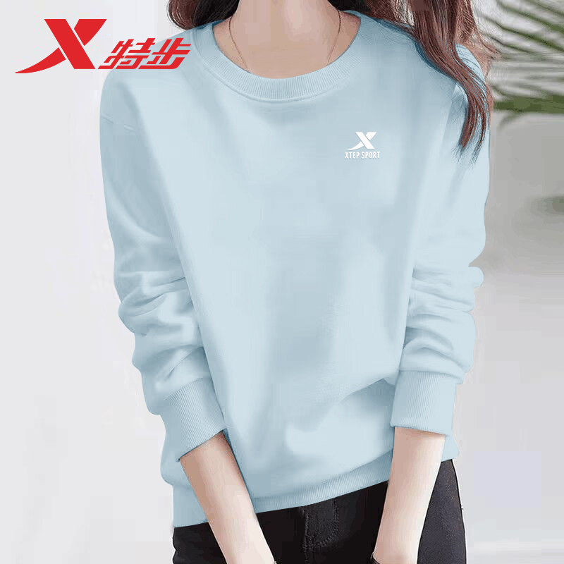 特步卫衣女款秋季长袖休闲服上衣宽松显瘦大码圆领加绒百搭针织衫
