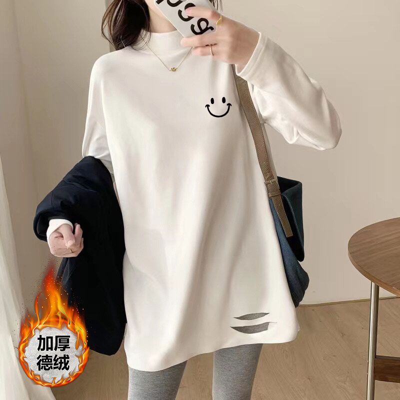 叠穿卫衣打底衫女秋冬加绒加厚宽松中长款遮屁股上衣内搭大码T恤